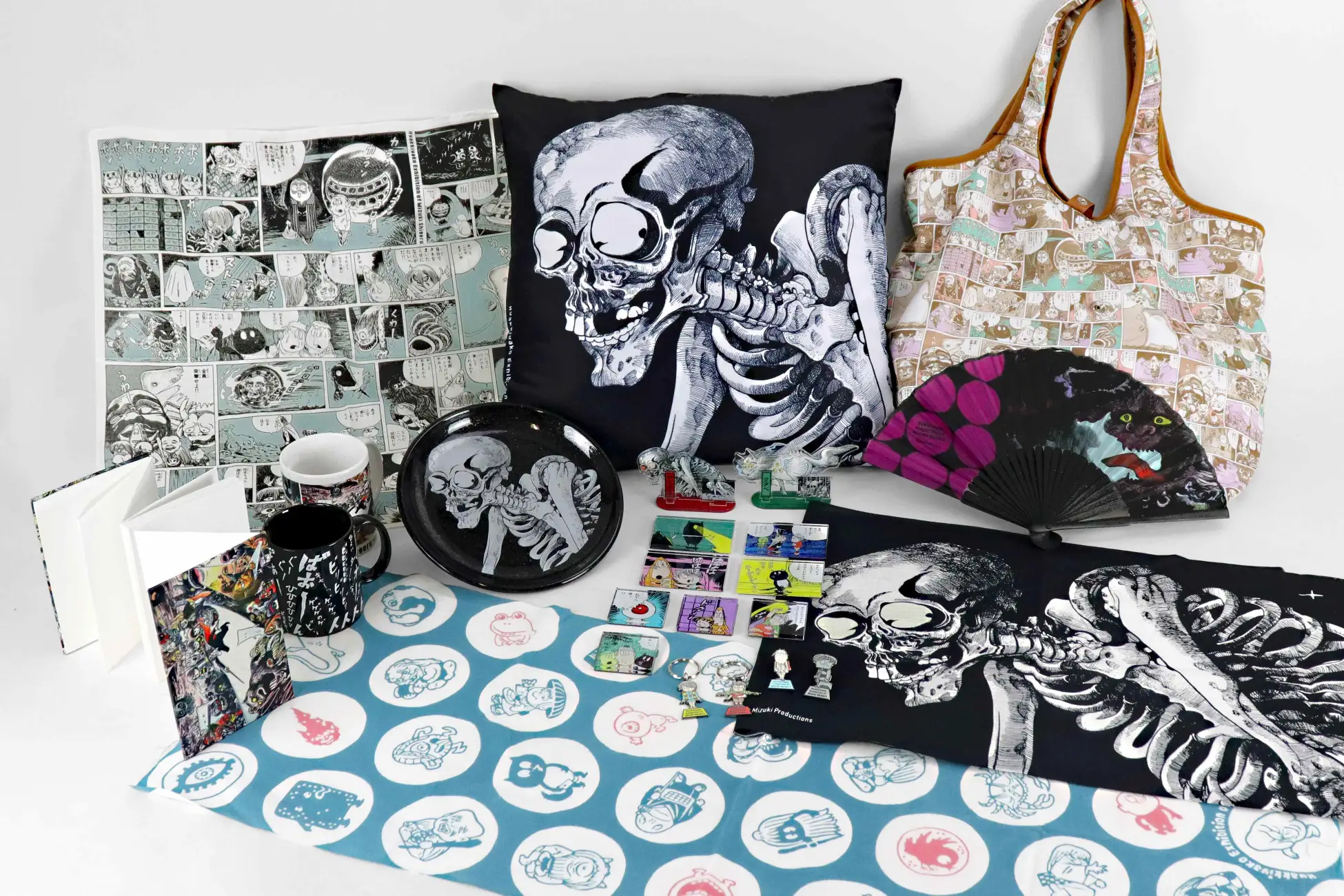 應該也有不少人對本次展覽的主視覺《餓者髑髏》情有獨鍾吧?紀念展當然不會忘記規劃周邊專區囉!除了販售有厚達96頁的場刊《水木茂的妖怪 百鬼夜行展圖錄》、以主視覺為設計的相關商品外,還有讓人目不轉睛、充滿百鬼夜行風格的多彩周邊供選擇。