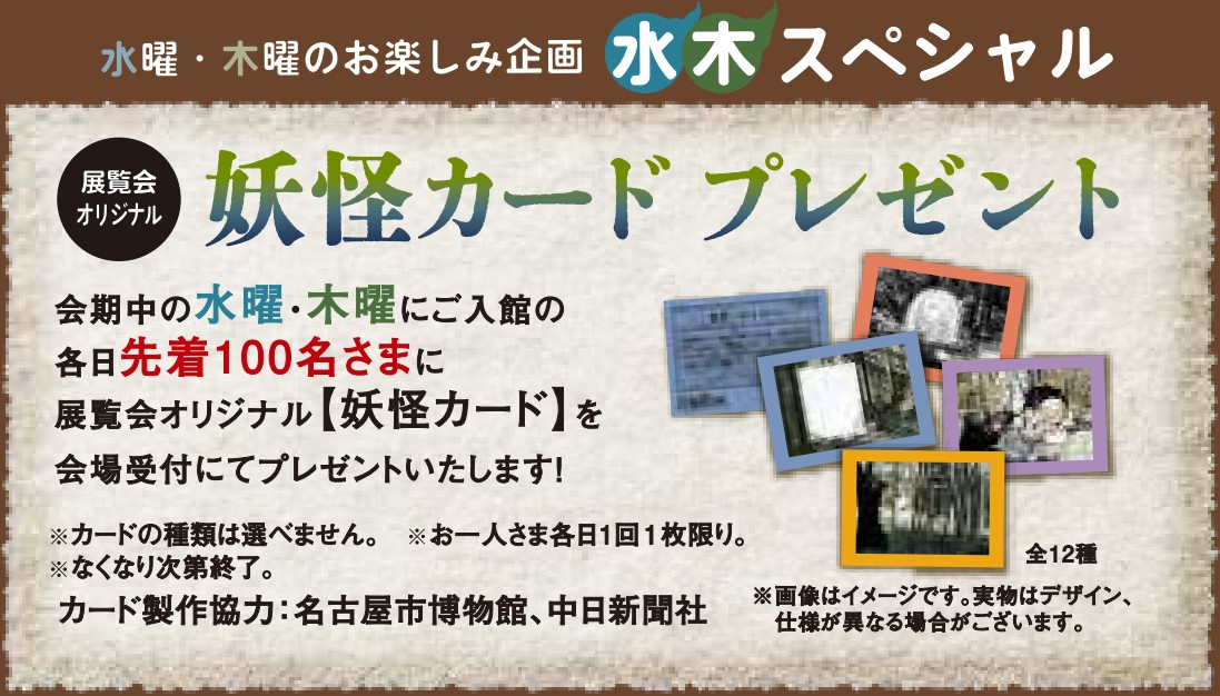 另外,若是在水曜日(星期三)或木曜日(星期四)入館的話,每天前100位入場者將會獲得本展覽原創的「妖怪小卡」,共有12種卡面隨機發送。若剛好安排前往的日程落在拜三或拜四的話,不如就在SOGO美術館一開門、也就是早上10點就前往碰碰運氣吧!