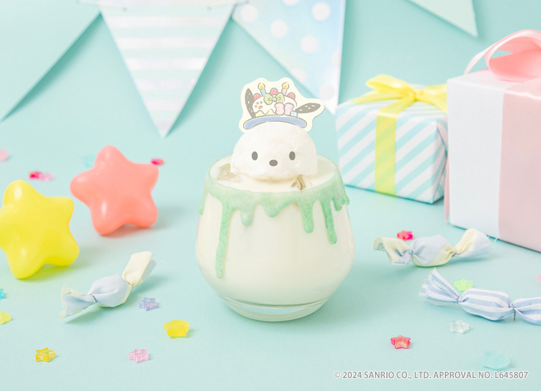 在帕恰狗期間限定咖啡廳所推出的甜點一直都有著相當引人注目的魔力。這次推出的聖代當然也有別於上一次的口味和外觀,這次以香蕉為主題的「ポチャッコの夢をかなえるサンデー 〜わっふる〜」(暫譯:實現帕恰狗夢想的聖代~鬆餅~)也能夠讓人在咖啡廳內享用可愛又甜美的甜點。