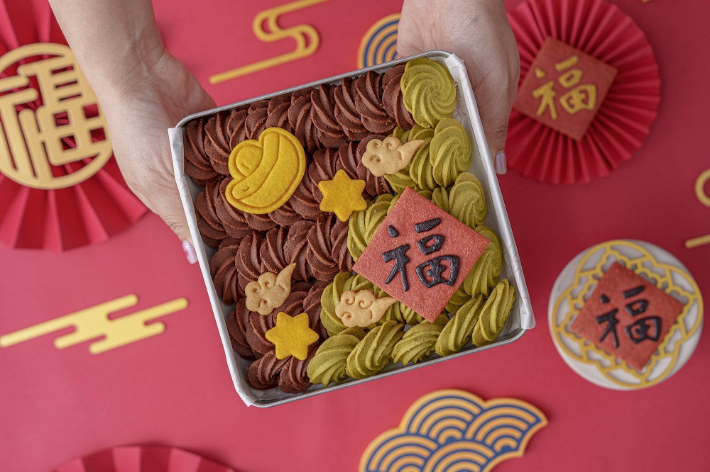 卡哇伊必選迎春納福手工禮盒,以抹茶曲奇搭配黑糖、巧克力沙布烈為主,搭配一旁各式可愛的造型餅乾,縮小的「春」字型和小柿子簡直讓人少女心噴發!喜歡創意小物的朋友們千萬別錯過。