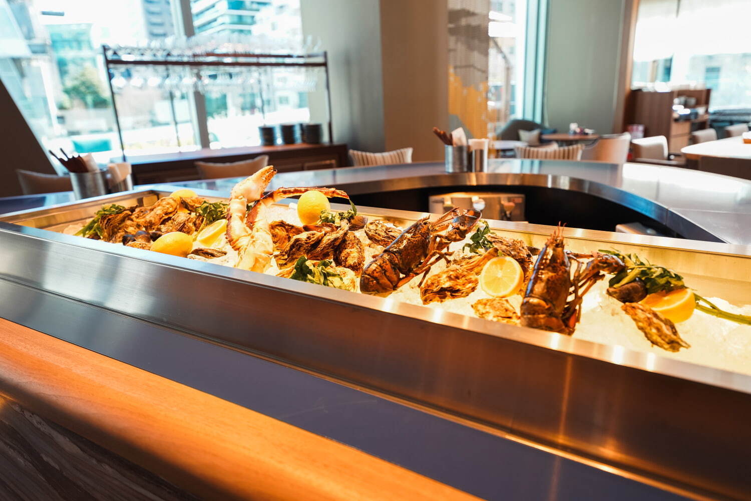 提到新風格的法式餐點會讓人有著什麼樣的印象呢?主打法式料理,在東京、京都開設了六間連鎖店的餐飲集團「プラン」(PLEIN)也有在本棟大樓內開設了以À la carte新風格為主的餐廳「ブラッスリー バイ プラン」(BRASSERIE by plein)。該店的特色就是全部的座位都鄰近著吧台,具備開放感的店內能夠吃到以低廉的原價販售的魚子醬或是黑鮪魚塔。若想要品嚐知名又美味的氣泡酒的話,那麼也有提供氣泡酒套餐「泡とキャビア」(暫譯:氣泡與魚子醬)。
