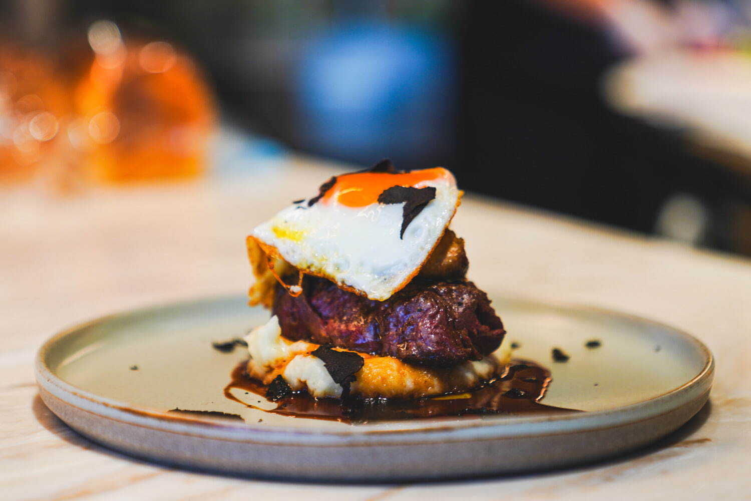 「フラワーアンドウォーター 虎ノ門」引人注目焦點菜色是在此處才會限定販售的新商品「牛ヒレとフォアグラのロッシーニ」(暫譯:牛柳和鵝肝的羅西尼)。本道料理使用了厚實的牛柳和被稱為高級食材的鵝肝,並在上頭擺放美味的煎蛋來點綴的一道佳餚。至於前菜部分,則是有著包夾鵝肝醬的麴零嘴、塔帕斯、義大利麵以及披薩等多樣化的選擇。