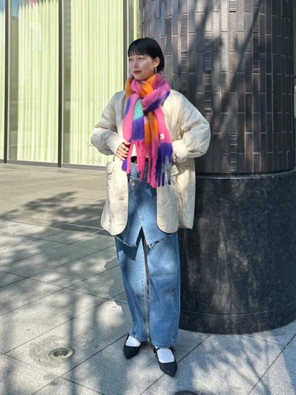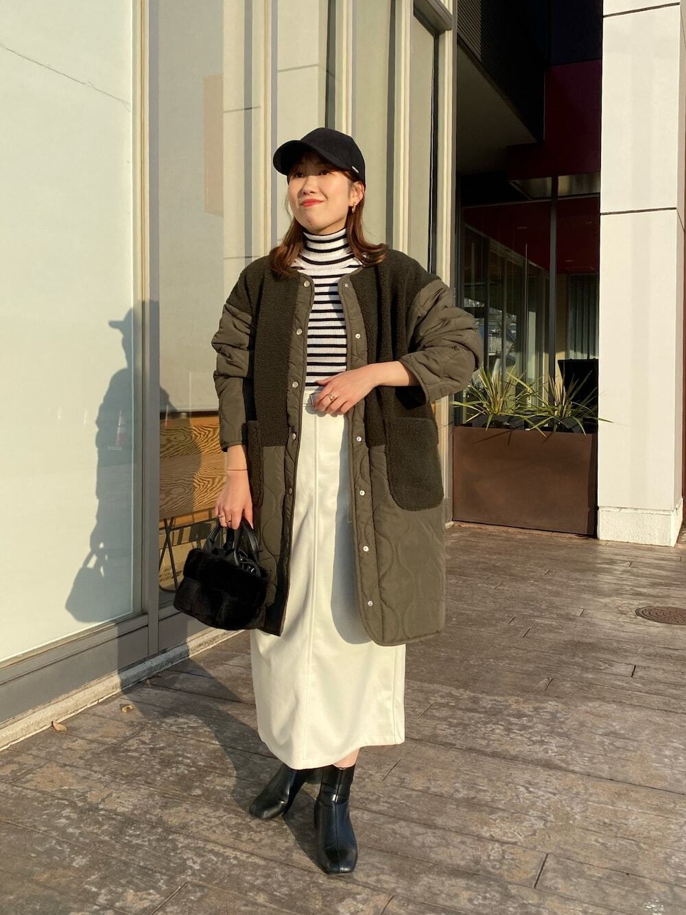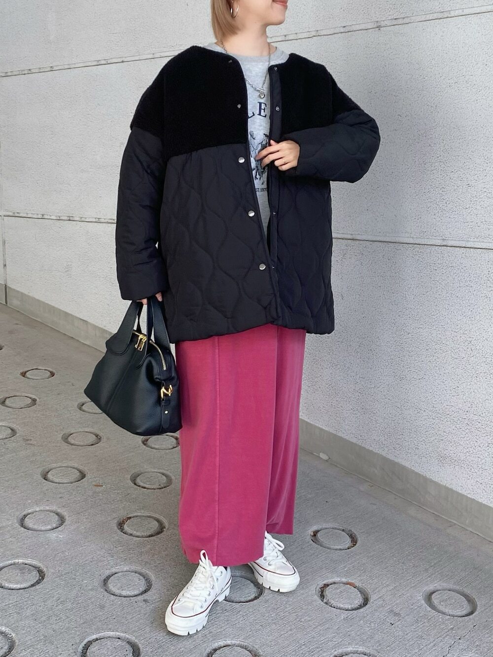 以絎縫外套 x 直筒裙的搭配組合,向來是日本女生最愛的穿搭之一,尤其在街頭常常會看見此種搭配風格,給人休閒感的絎縫外套,帶點機能性的戶外 Look ,加上直線剪裁的直筒裙,呈現上寬下窄的輕鬆率性印象,不僅簡單營造加分風格,隨性踏上球鞋就很好看加分。