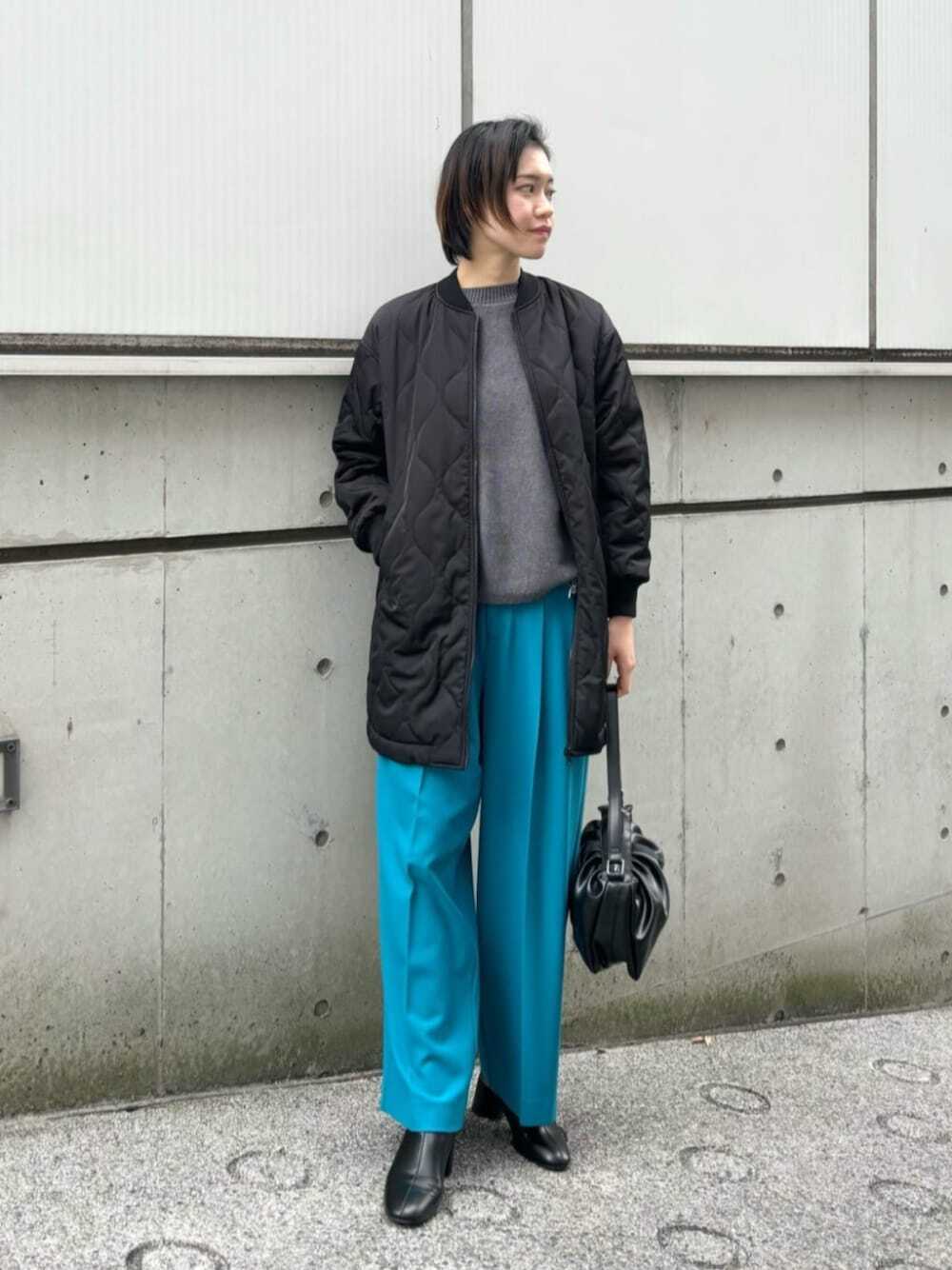 絎縫外套搭配技巧 Look 04. 絎縫外套 + 寬褲