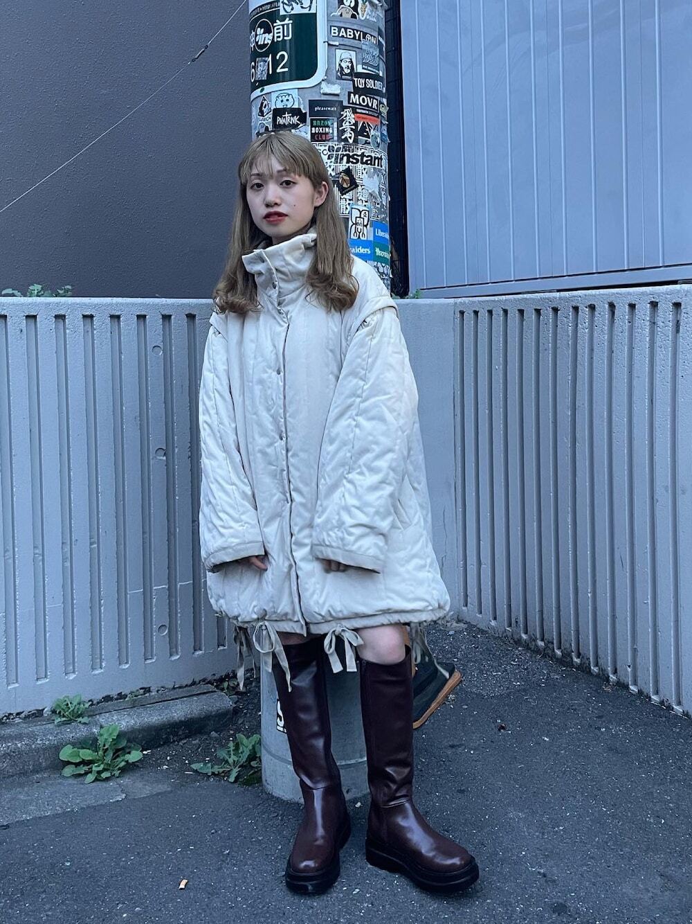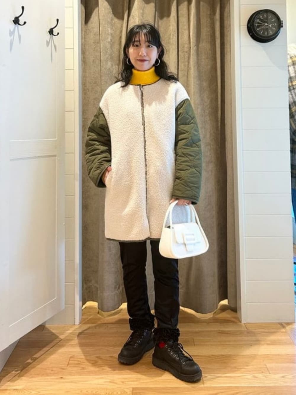 絎縫外套搭配技巧 Look 01. 絎縫外套 + 長靴