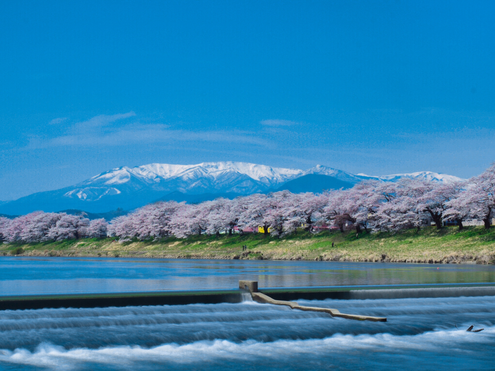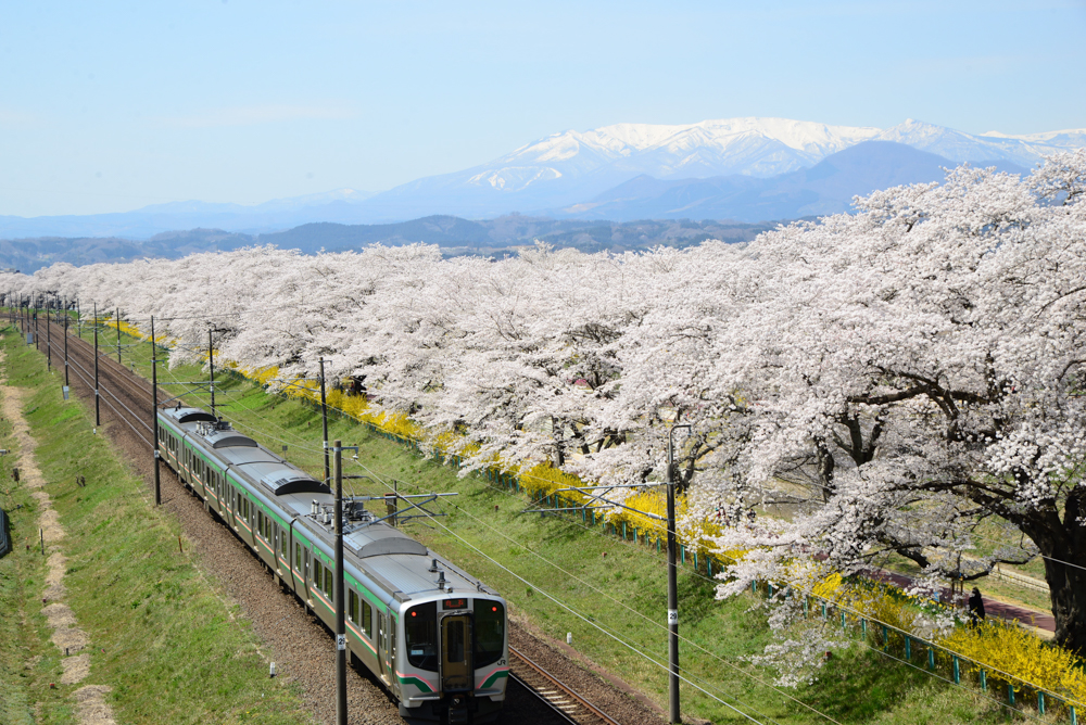 說到日本東北必訪的賞櫻景點,就不能不提宮城縣的「白石川堤一目千本櫻」。綿延約8公里的白石川堤上有著約1,200棵的櫻花樹,加上這裡視野遼闊無遮蔽,一眼就能將千株櫻樹盡收眼底,因而有了「一目千本櫻」之名。綿延的櫻花與湛藍的白石川相映,再加上遠方的藏王連峰,三色交織的美景是只有這裡才欣賞的到。此外,在花期時,JR東北本線電車行駛到「大河原站」到「船岡站」之間時還會放慢行駛速度,讓乘客能在電車內透過車窗賞花。