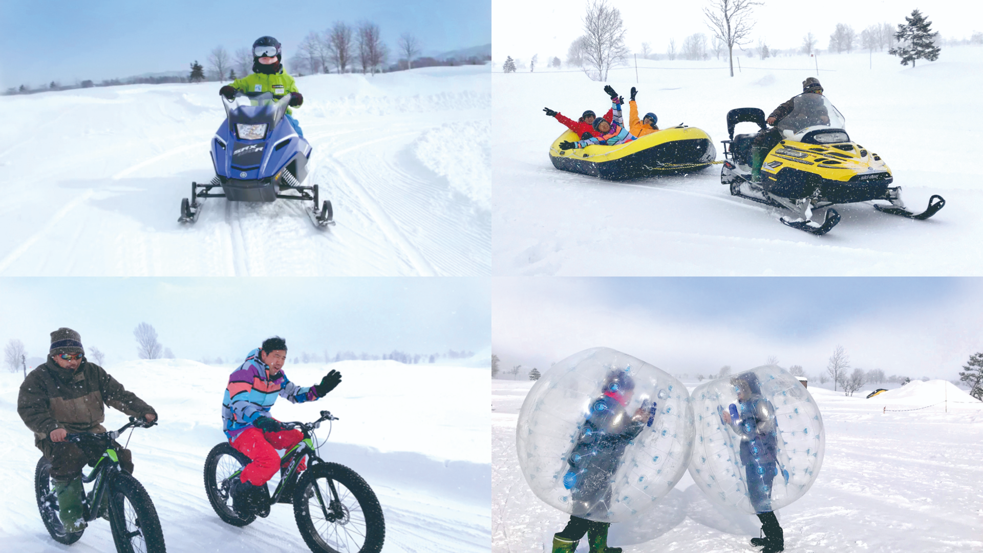 從刺激的雪上摩托車、安穩的雪上四輪越野車乃至於舒適的雪上橡皮艇都應有盡有,而親切的工作人員態度及美味的飲食也讓日本國內外的觀光客都讚不絕口,相較於其他的旅遊景點,這裡的價格也非常實惠。若想體驗在雪上奔馳的感覺,那就一定要來北海道美唄雪地一趟。