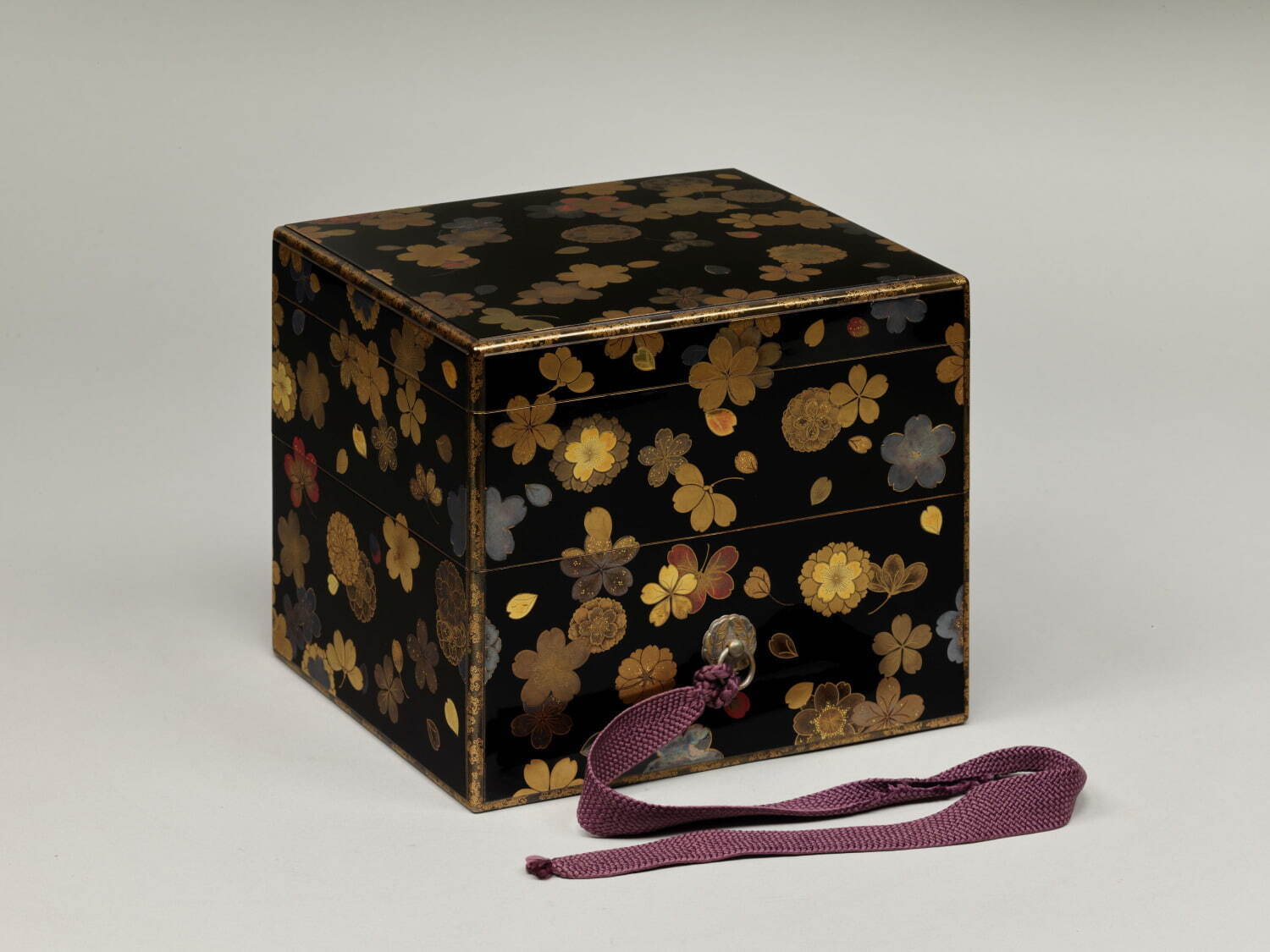 茶道、書道、花道。除了技術外,透過心靈去體會出特定技術的深奧之處且不斷追求精益求精的做法就被稱為「道」。但是大家有聽說過香道嗎?其實香道就是指遵從禮法焚燒香木來鑑賞香氣,是一門非常優雅高貴的學問。在這次的展出品中,由江戶時代傳承下來,在香道中使用的道具《桜蒔絵十種香箱》就別出心裁又高雅。在日本古代,黑色被視為非常尊貴的顏色之一,也因此許多藝術品都會使用黑色讓其看起來更加優雅且高貴。而這次在上頭點綴的金色及銀色也都讓《桜蒔絵十種香箱》顯得更加莊嚴,讓人會不小心看得入迷。