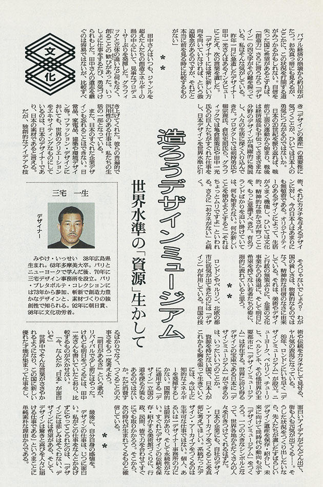 時裝設計師三宅一生在2003年1月時向朝日新聞投稿了題為「來建造設計美術館吧(造ろうデザインミュージアム)」的文章,引起了廣泛反響,並在三井不動產等許多支持者的幫助下,開始了21_21 Design Sight建造計畫。21_21 Design Sight由三宅一生基金會統籌設計,除了三宅一生外,還有建築師安藤忠雄、產品設計深澤直人及視覺設計佐藤卓等,各種不同領域的設計大師共同攜手打造,並於2007年2月正式開館。