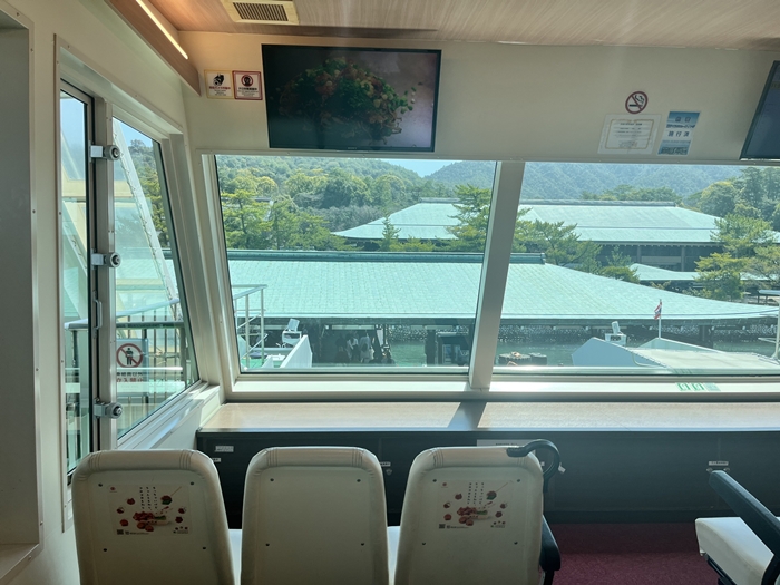 前往宮島的松大汽船上有室內、戶外座位區可以選擇,單程約10分鐘左右,大家可以選擇自己喜歡的風景自由乘坐。