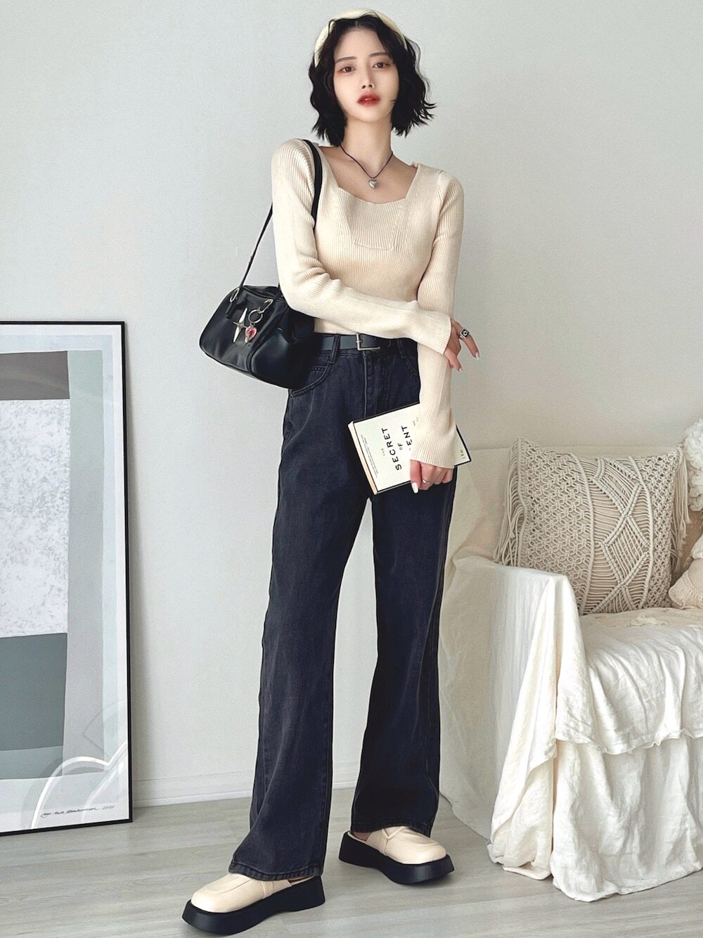牛仔褲混搭推薦 Look 02.針織上衣 + 牛仔褲