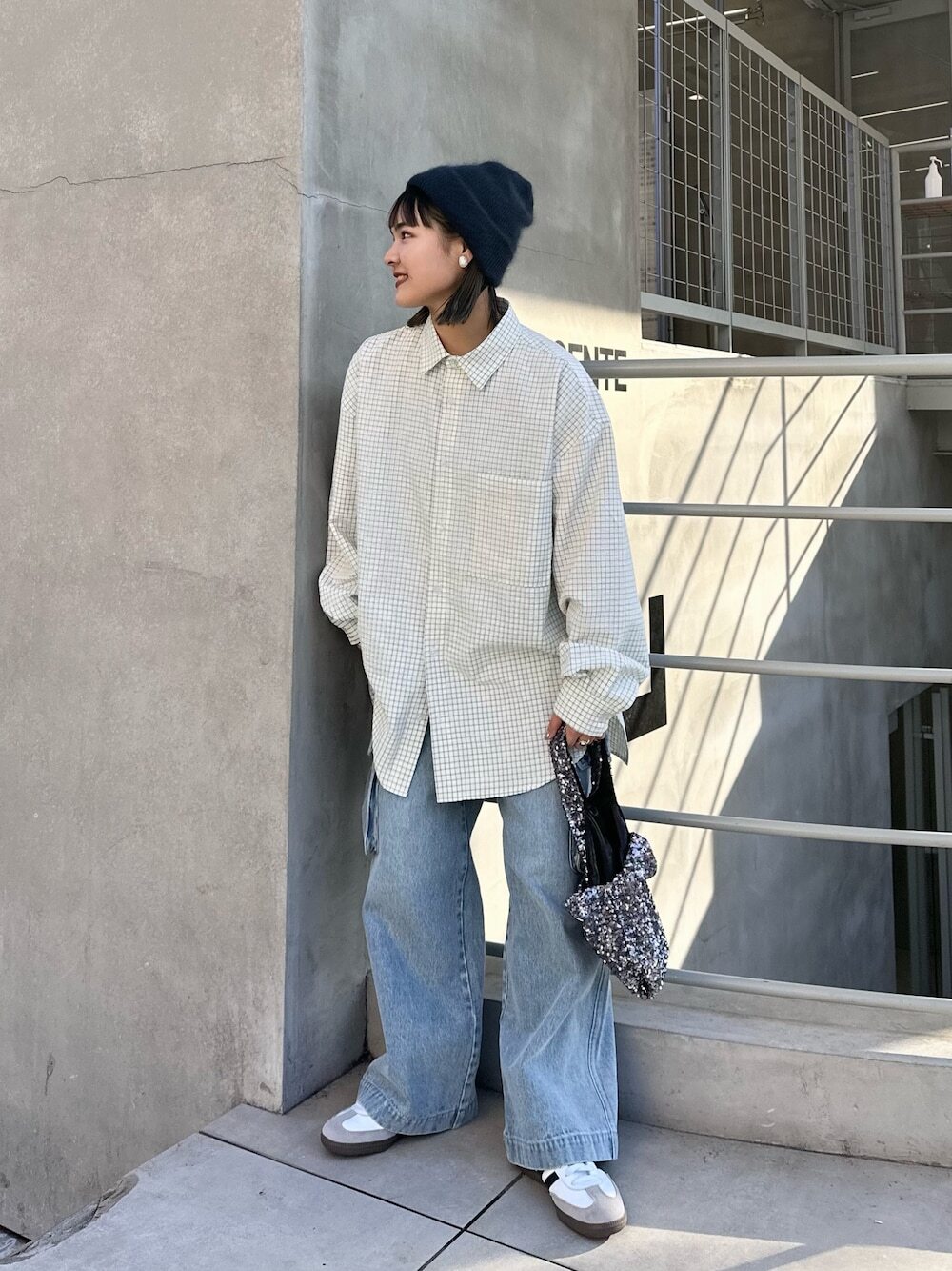 近期 outdoor 戶外單品相當夯,帶有機能性的服飾,使造型呈現一股男孩感中性氣息,而本季同樣為時髦關鍵字的工裝褲,絕對是必買褲款之一,尤其牛仔工裝褲日本女生都在穿,以襯衫加上牛仔工裝褲,簡約率性衣著令人印象深刻,另再加入帽子配件使造型度更完整。