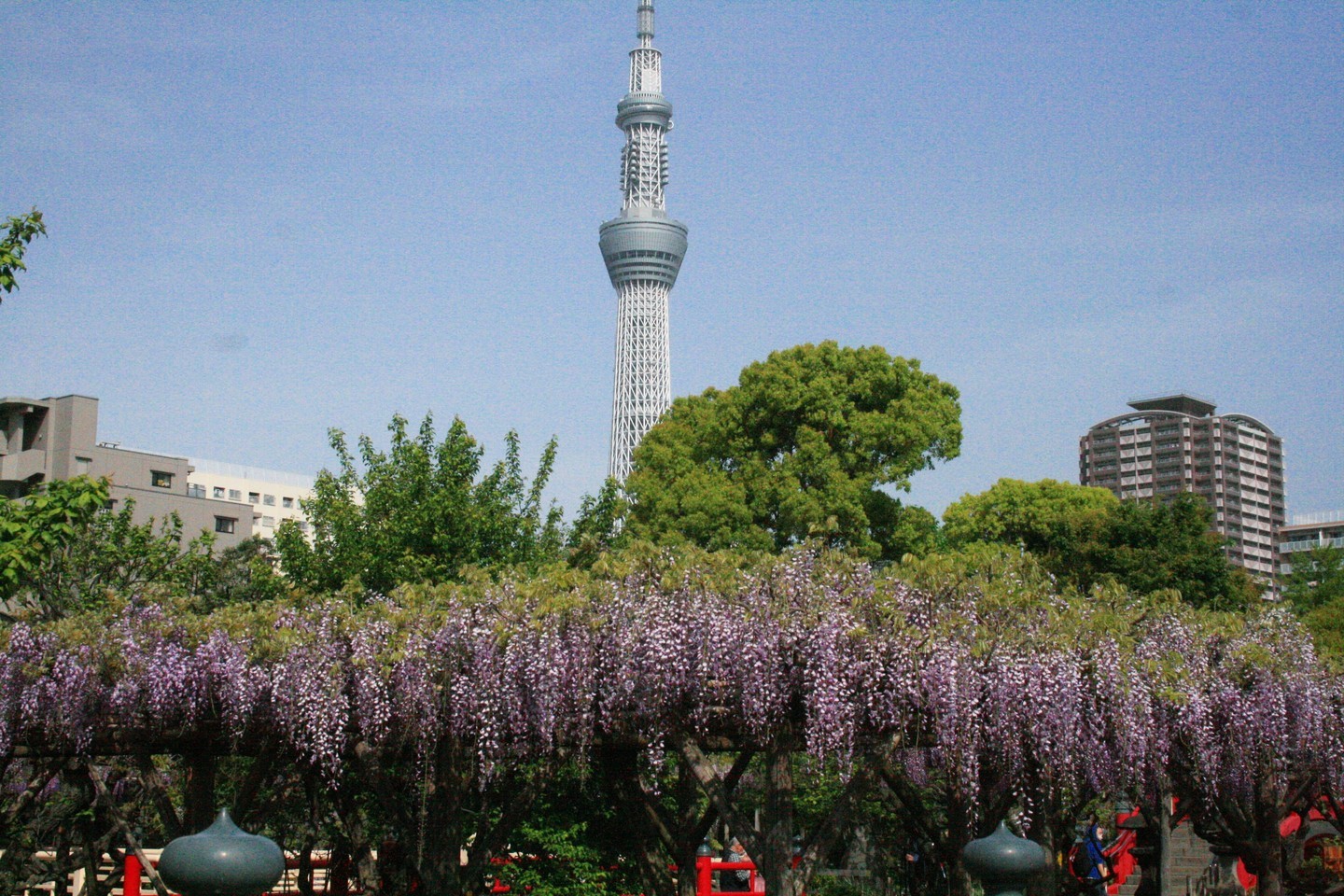 而主宰學問之神的龜戶天神社已佇立於這片老街區350餘年,寺內所栽種的50株紫藤花,年年盛開且療癒了遊客們的心。龜戶天神社的紫藤花每年免費提供給遊客入寺內參觀,建議從大鳥居依序從太鼓橋(男橋)到平橋、太鼓橋(女橋)繞行三座橋參觀,可以看到呈現出過去、現在和未來的不同景觀。