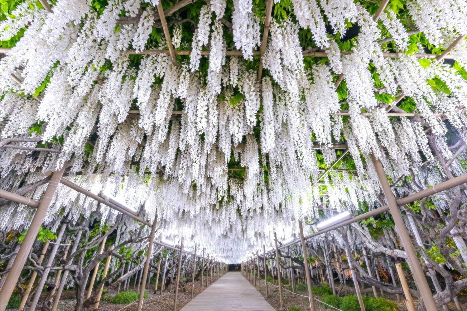 櫻花祭過後就會進入藤花盛開的季節,紫藤花更是箇中代表,而欣賞紫藤花最著名的景點之一就是位於栃木縣的「足利花卉公園」,每年都會舉辦紫藤花祭典,超過350株的不同品種的紫藤花從棚架傾瀉而下,如夢似幻的景象,被譽為一生必看一次的景色之一,也曾在2014年被CNN評選為世界10大夢幻旅遊景點,因此吸引許多人特地前往欣賞,這次就來為大家介紹這個春天專屬的紫色美景!