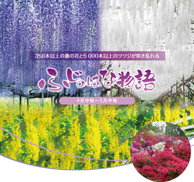 藤是日本自古以來就有的花木,也曾經出現在萬葉集中。在足利花卉公園內種植了超過350株以上的藤樹,除了日本原種藤樹,有淡紅、紫和白三種顏色,也有以在日本栽培困難而聞名的黃色藤樹(きばな藤),若按顏色分的開花順序是淡紅色、紫色、白色、黃色,因此賞花期長達一個月,依據不同時期可以欣賞到不同風情的藤花。