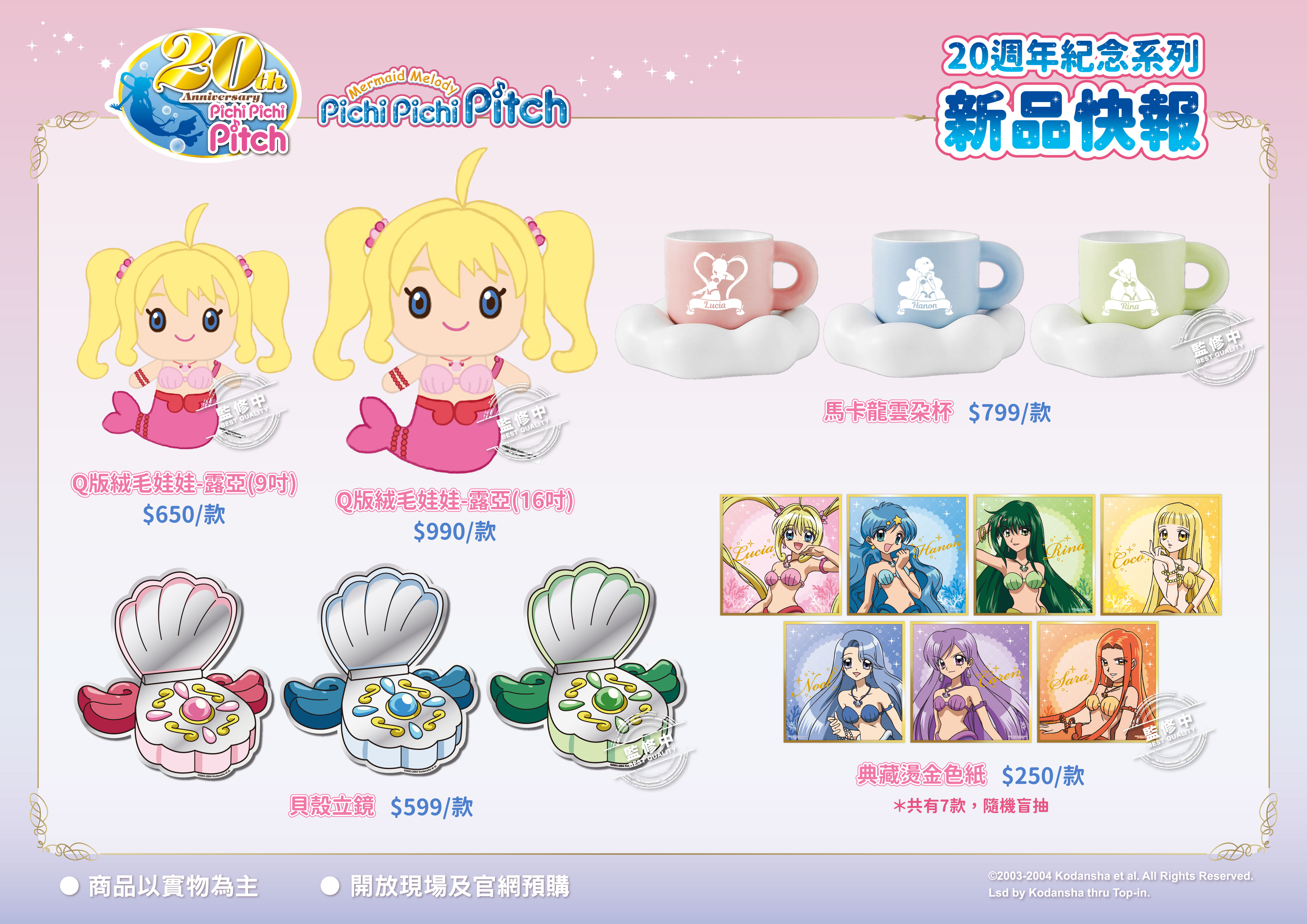除了先前曾推出的20週年紀念系列人氣飾品、有著可愛造型的人魚尾巴飲料提袋、蝴蝶結帽子、透明水晶貝殼包、小波及露亞造型的Q版絨毛娃娃吊飾..等都會在店內現身之外,這次高雄場更推出了全新系列的週邊商品!