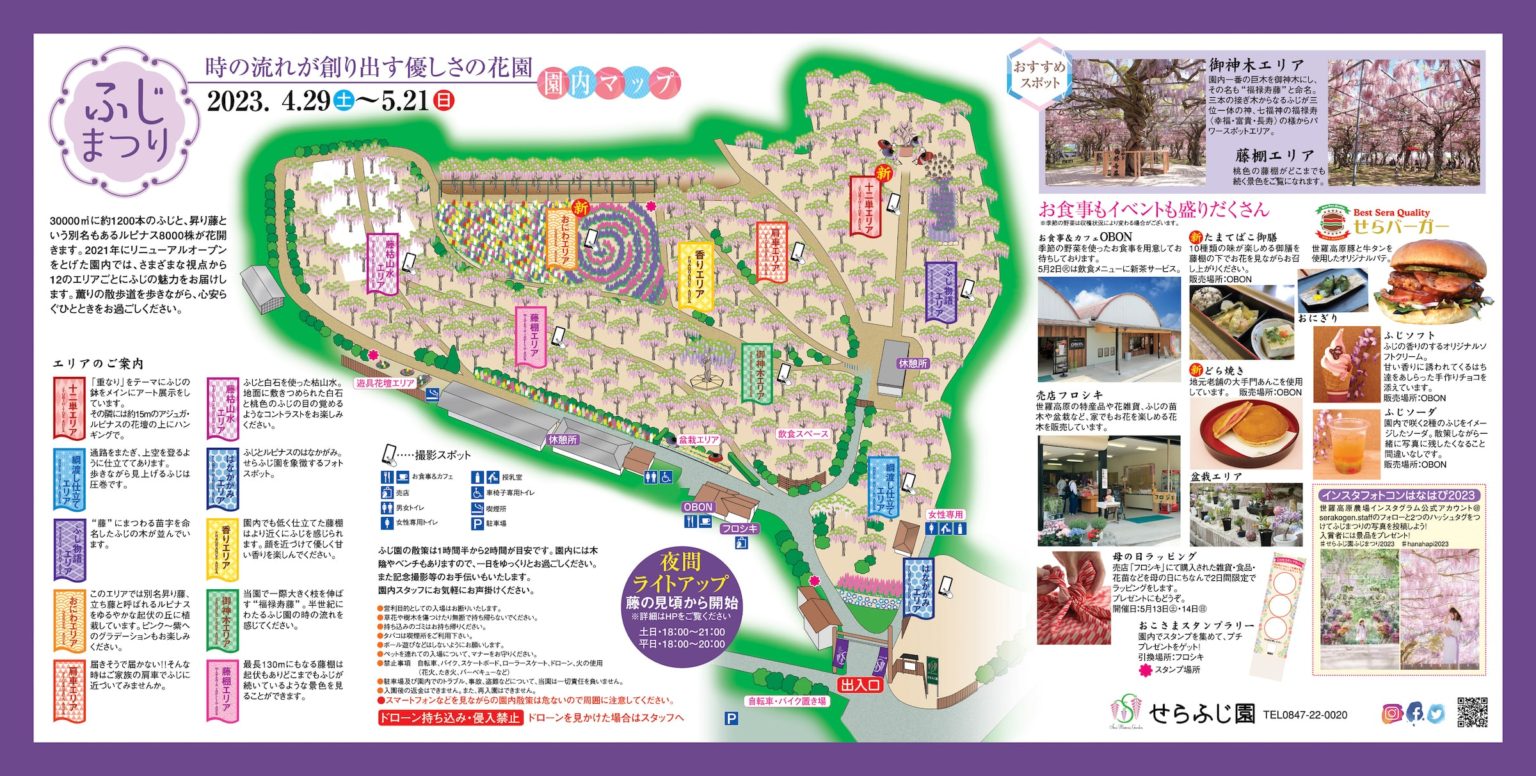 世羅藤園共有10個園區,以下為大家介紹在藤祭期間熱門的拍照打卡景點,以及各種活動!