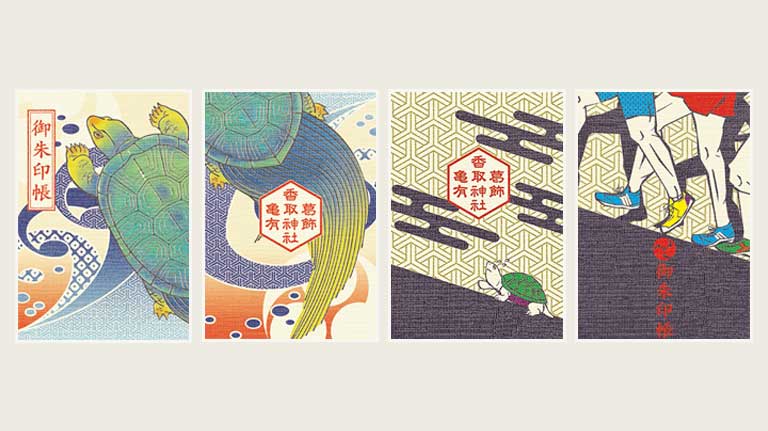 龜有香取神社的御朱印帳則是有和風的龜柄設計,圖案以烏龜為主,另一款則是強健的腳登上坡道為主題。
