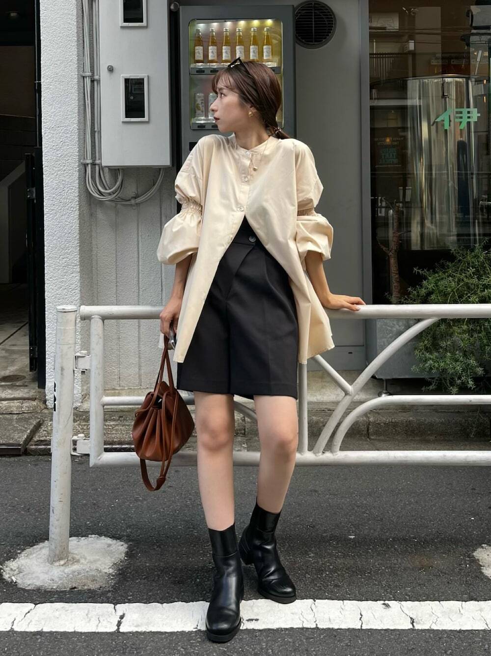 喜歡以中性風呈現造型的大家,當想融入襪子混合營造細節焦點的話,選擇 TEE + 襯衫 + 短褲,瞬間連結率性又休閒的男孩氣息,鞋子推薦選搭黑色短靴,使造型個性更顯注之外,再融入同色系短襪,稍微露出襪子不僅可以修飾腿部纖細度,好穿好走的平底短靴,讓人在戶外走一整天都不會累。