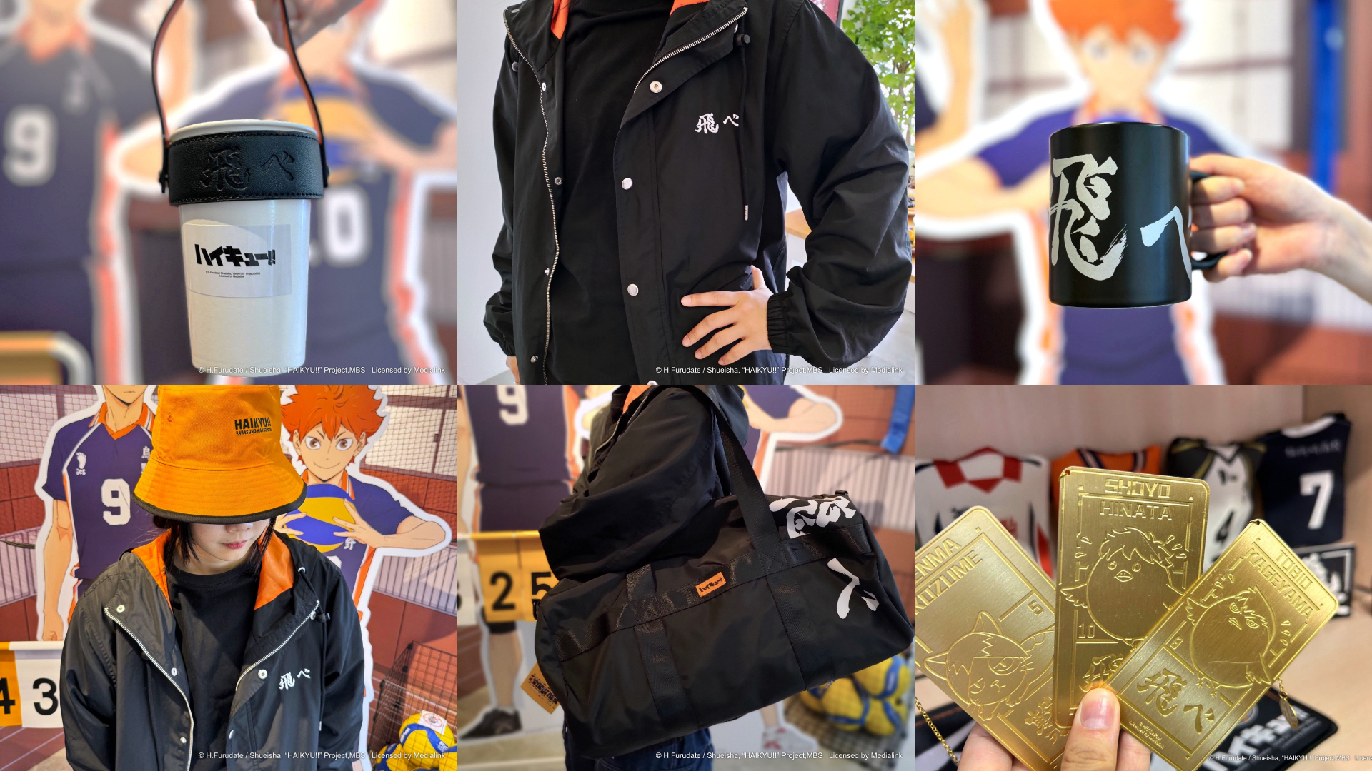 而雙面漁夫帽,一面以黑底電繡上白色「飛べ」文字的經典設計,另外一面則是橘底印刷黑色的「HAIKYU!!」文字,簡約的設計配上大膽的色系,也是必入手單品;還有經典霸氣的「飛べ」字樣黑色帆布袋及圓筒包,率性又帥氣!另外像是Q版立牌、排球服造型的飲料提袋跟壓克力吊飾等等,也是粉絲必買的超可愛周邊商品!