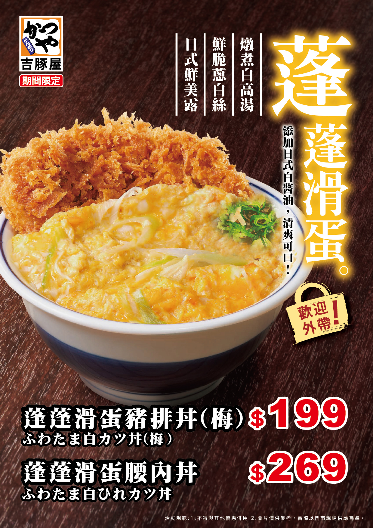 ■蓬蓬滑蛋豬排丼(梅)199元、蓬蓬滑蛋腰內丼269元