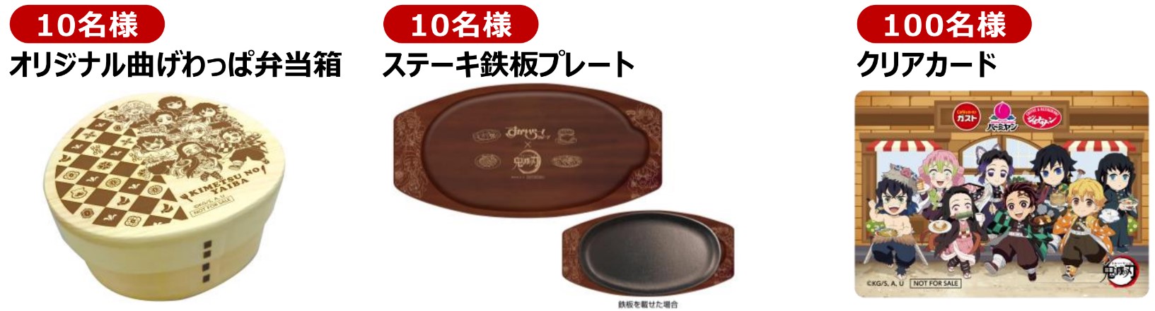 而這次只要在聯動期間內,前往Gusto、Bamiyan、Jonathan's的各店,追蹤它們的官方X並轉推相關貼文後,就有機會抽選到超級稀有的鬼滅之刃聯動道具。除了會10份便當盒及10份牛排鐵板以外,更是會抽出100份鬼滅之刃主角群的收藏透明卡。