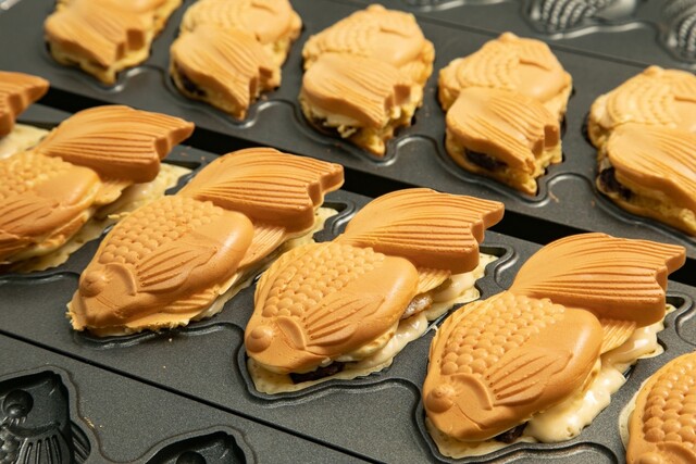 除了上述所介紹的招牌飲品之外,這裡還有另一款也是Café & Bar金魚亭才獨有的專屬餐點,那就是有著金魚造型的「きんぎょ焼き」(金魚燒)。一般在日本常見到的都是鯛魚燒,而在這裡,老闆為了打造出與「金魚」相呼應的菜單,特別想出了這款金魚造型的金魚燒,模具也是特地為此而訂製的,有別於一般常見的「鯛魚」,這裡能吃到的則是「金魚」造型呢!