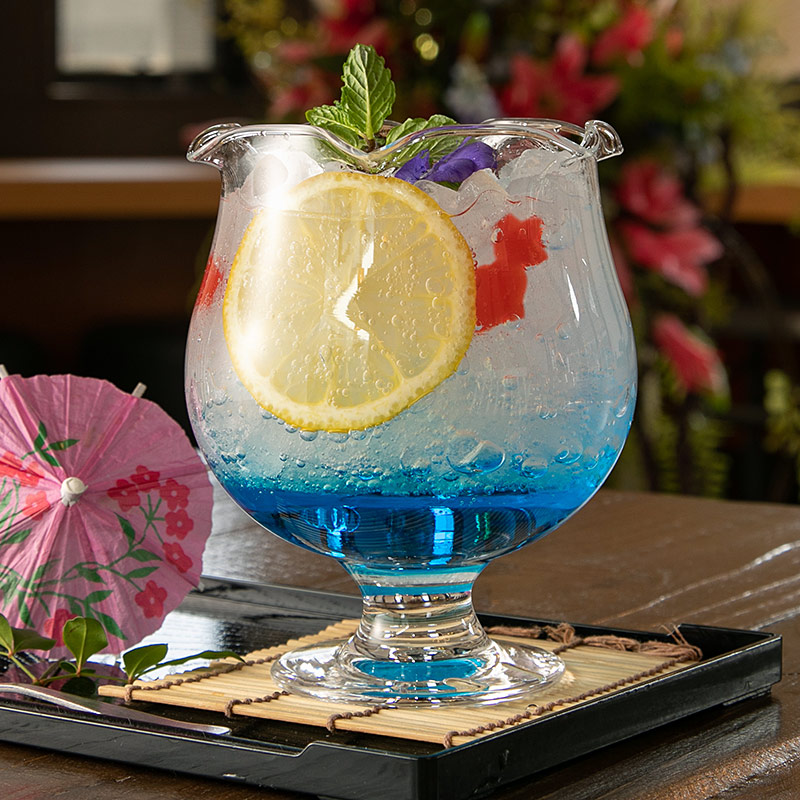 提到這一款「金魚鉢のソーダ」(金魚缸蘇打),可以說是吸引許多顧客來訪此地必點的飲品。這是老闆為了讓餐點可以符合「金魚」這一主題概念,所特別想出來的造型飲品,以金魚缸造型容器,盛裝各種繽紛色系的蘇打汽水,除了清爽的藍色(夏威夷口味)之外,還有綠色(哈蜜瓜口味)、白色(可爾必思口味)、紅色(草莓口味)、粉色(蜜桃口味)等不同口味的蘇打汽水,為夏日增添清爽滋味。