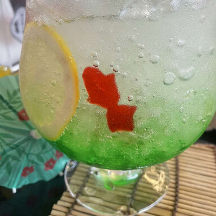 而其中一定要介紹的亮點,就是汽水裡面竟然還有放入金魚造型的果凍,彷彿就像是有金魚悠游其中一般,讓人看了十分驚艷。