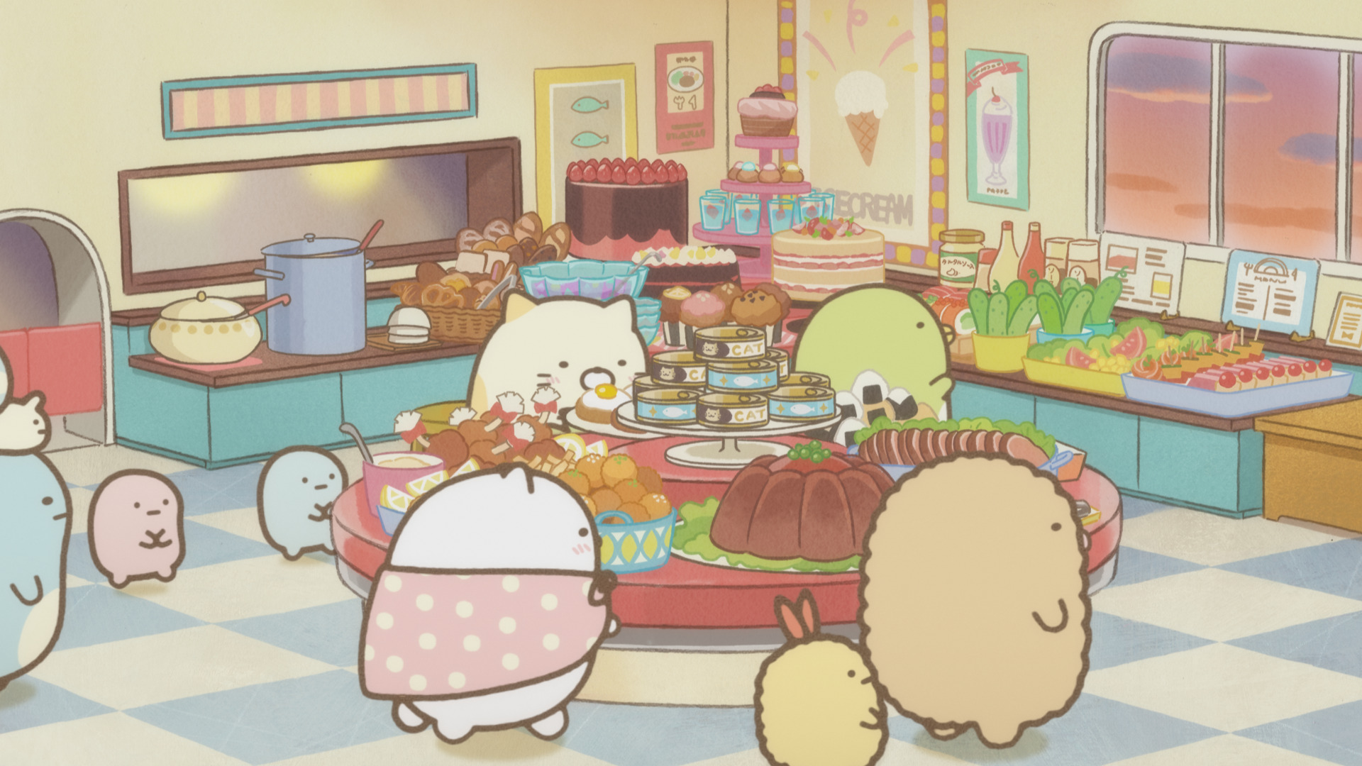 到了晚上,還有針對每位小夥伴打造的專屬主題套房。每天早上,棕熊廠長還會親自帶隊練早操,寵愛員工無極限的福利,也讓網友羨慕直喊:「是幸福企業耶!」作田導演還透露,員工餐廳正是他最喜愛的場景之一,「這些看起來很美味的餐點,全都由我們最擅長繪製食物的工作人員畫的!我們邊畫還邊想『企鵝?會吃這個吧!有白熊在,那需要熱湯吧!』而且這次為了展現豪華自助吧的概念,連貓罐頭的配色都認真考究,特別改用頂級貓罐頭的設計!」細節滿滿的全新第三彈《角落小夥伴電影版:奇幻的玩具工廠》絕對會讓大小粉絲們收穫滿滿!