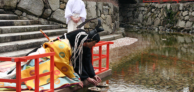 每年的3月3日是日本的雛祭,也就是女兒節,會在這天祈求家中的女孩能夠健康成長。在下鴨神社則是會將放置在稻草蓆上的雛人形放入御手洗川中,以祈求孩子們無病無災。