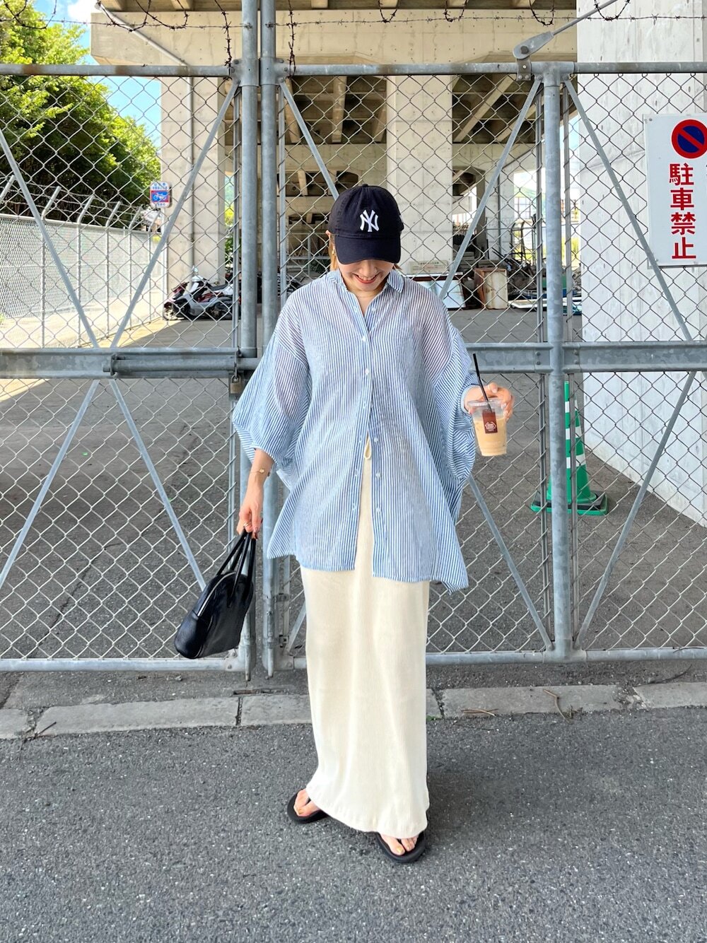 直線設計的直筒裙,穿著時能為下半身帶來修身比例,可以藏肉又增加高挑感的單品,成為許多女生最愛穿搭的款式,以透膚襯衫加直筒裙,傳達日系輕休閒風格,再混和手拿包呈現質感突出的夏季 Look 。