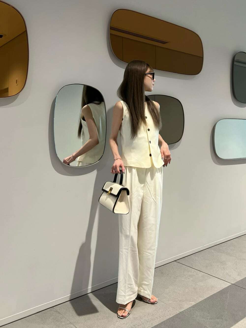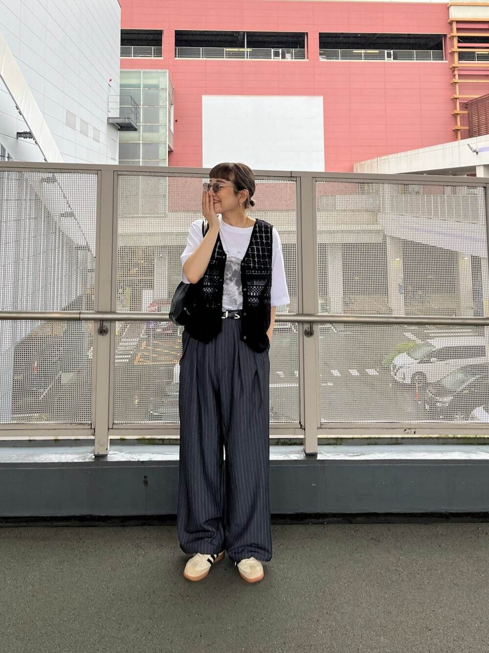 開釦造型背心向來是日本女生最愛單品之一,不論單穿或者內搭短袖上衣,使背心穿搭也能表現與眾不同的風格,以奶白色背心加上奶白色休閒西裝褲,利用同色系混合,營造高級的日系大人感,或者選用針織背心與條紋西裝褲,隨性加入墨鏡和球鞋,連結帥氣十足的中性 Look 。