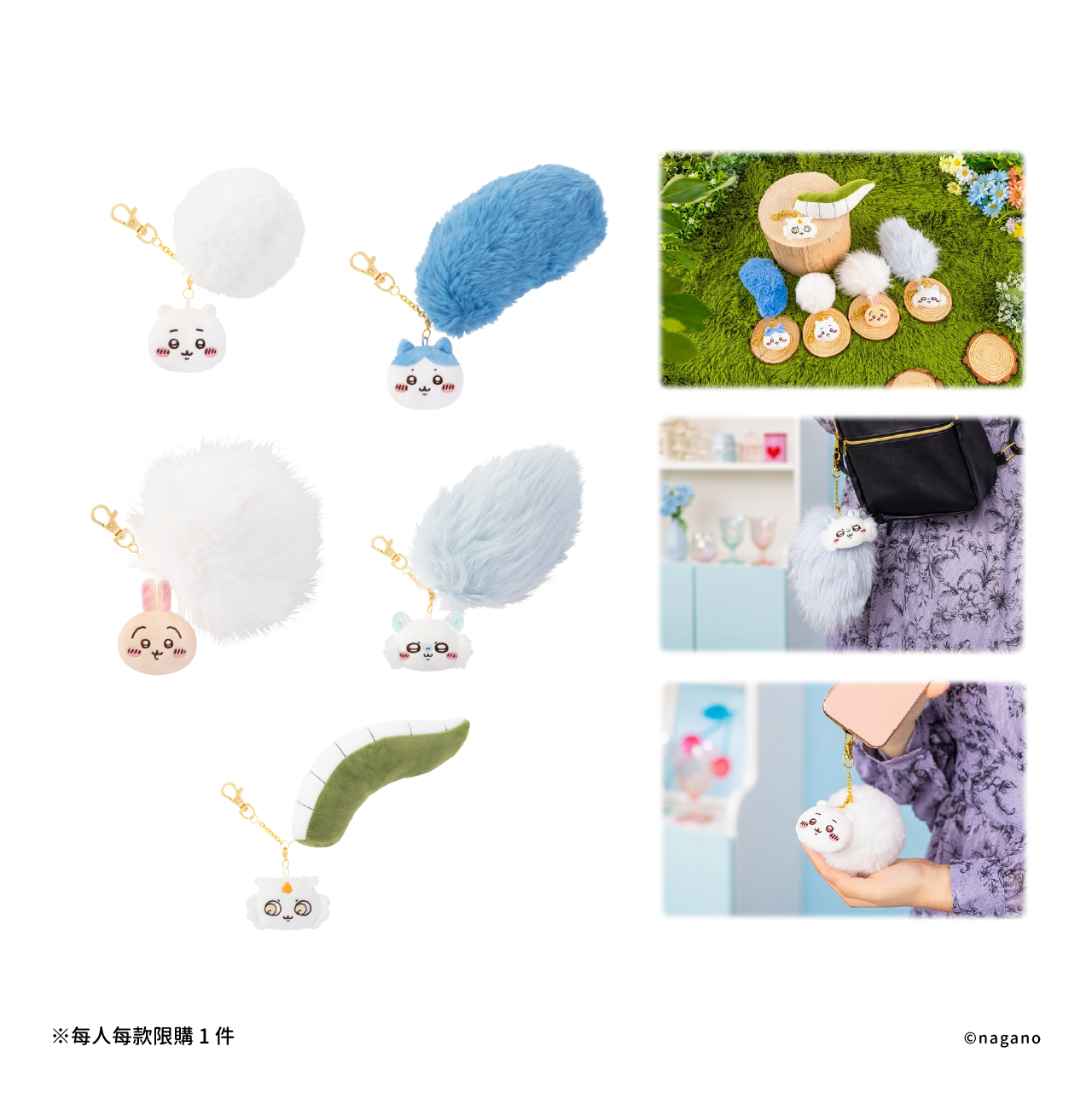 如果你喜歡毛茸茸的掛飾,那大力推薦這款澎澎尾巴!小巧可愛的角色玩偶搭配非常柔軟又很澎的尾巴吊飾,不管是掛在包包上還是隨身的皮夾、手機都非常適合。每一個角色的尾巴摸起來手感都很棒,輕輕摸一下就讓人覺得被治癒。