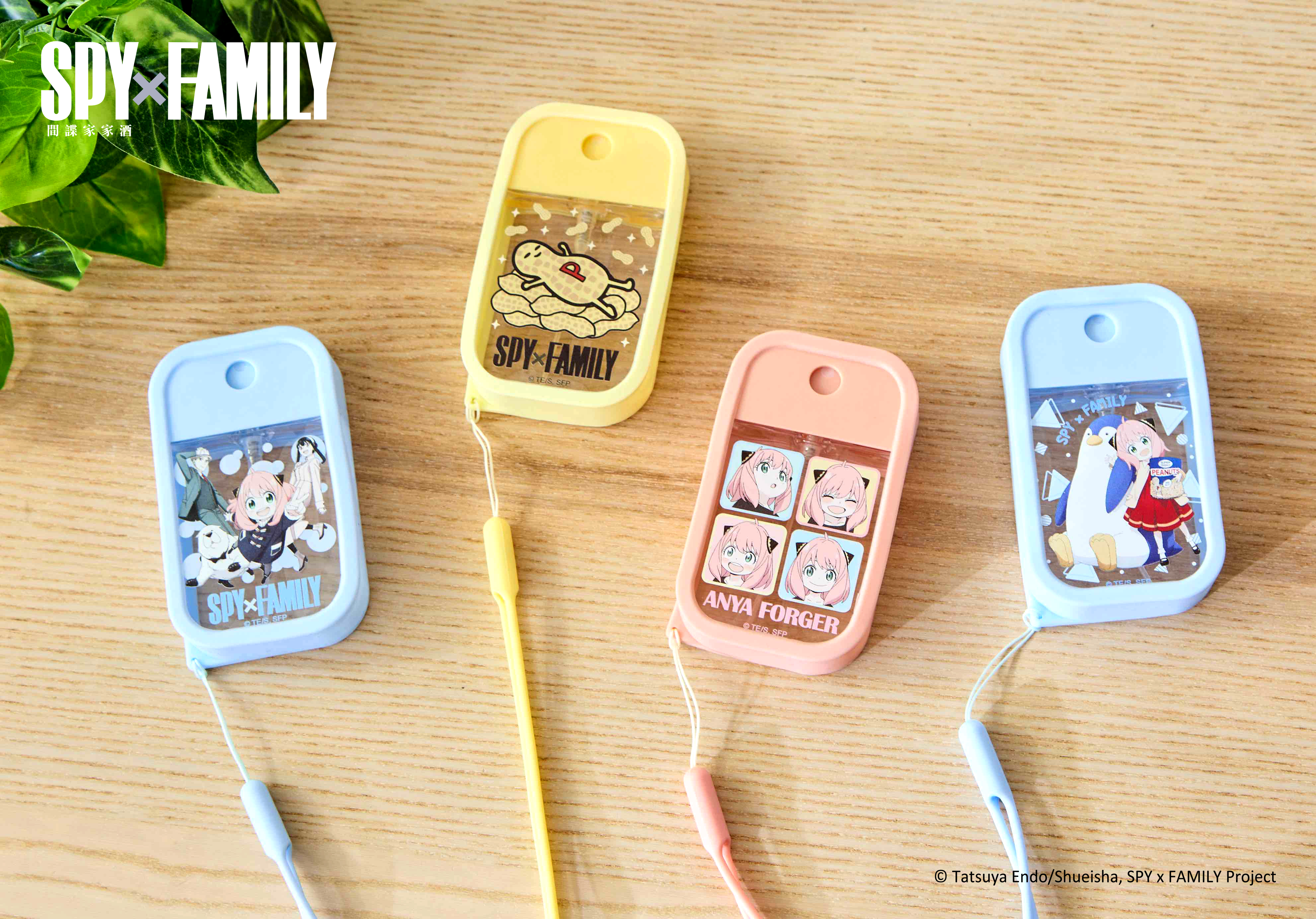 跟細菌說bye bye!佛傑一家、安妮亞、安妮亞&企鵝、花生四種款式「噴霧瓶」隨身帶上!外帶熱飲就用「保溫瓶」,粉色安尼亞花生款、藍色安妮亞彭德款每天輪著用!制服「側背包」超吸睛,大容量裝入許多生活小物,四款安妮亞「零錢包」糖果包裝卡哇伊!夏日消暑必備「扇子」有花生、玩具兩款幫你扇出涼爽的風,療癒小物「流沙造型鑰匙圈」佛傑一家、伊甸學園陪著鑰匙上山下海!出門帶上彭德與花生「飲料提袋」,堅固提繩飲料幫你穩穩拿!