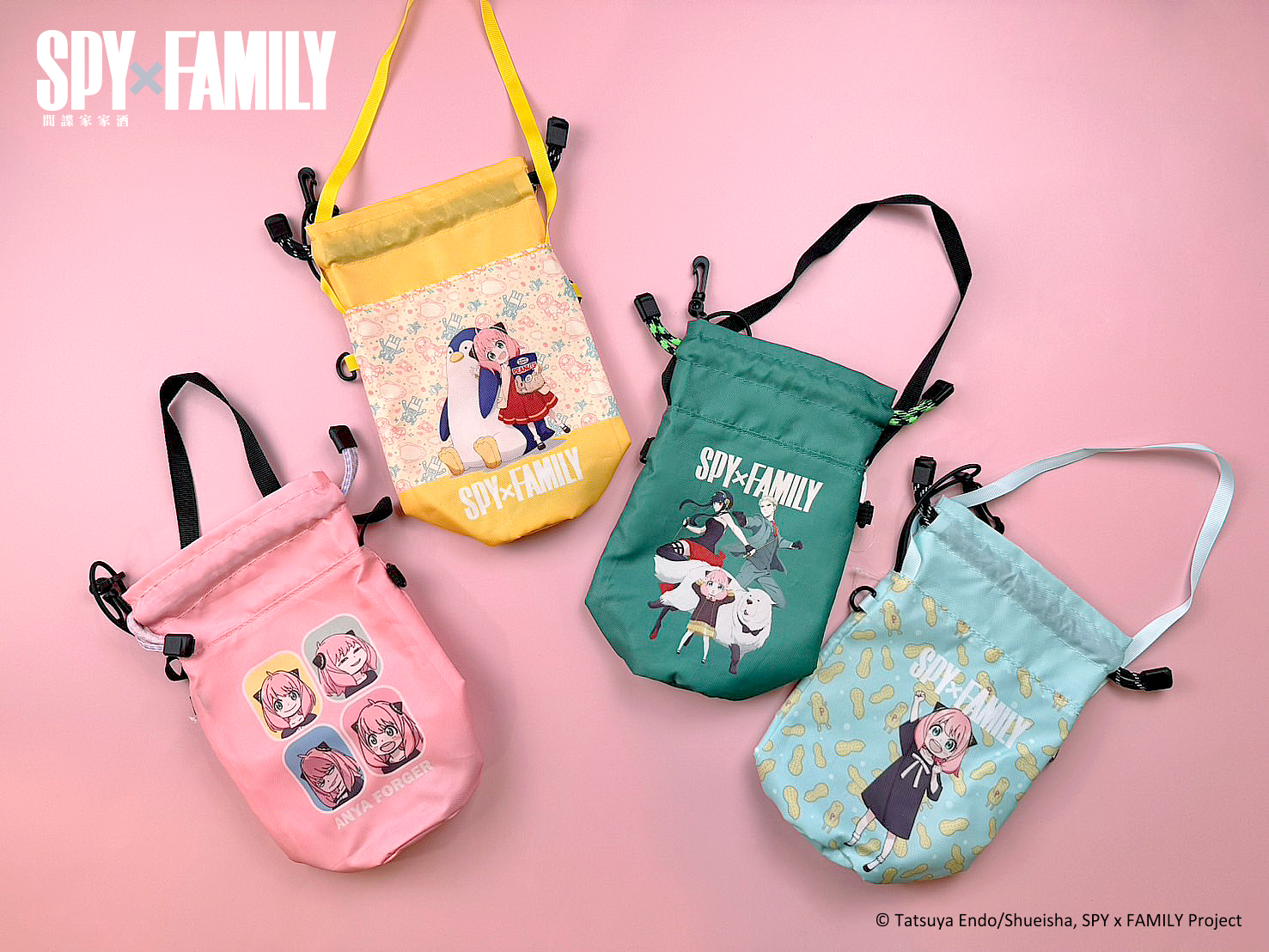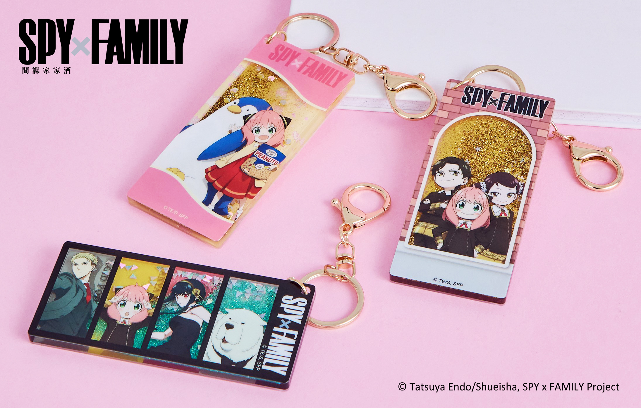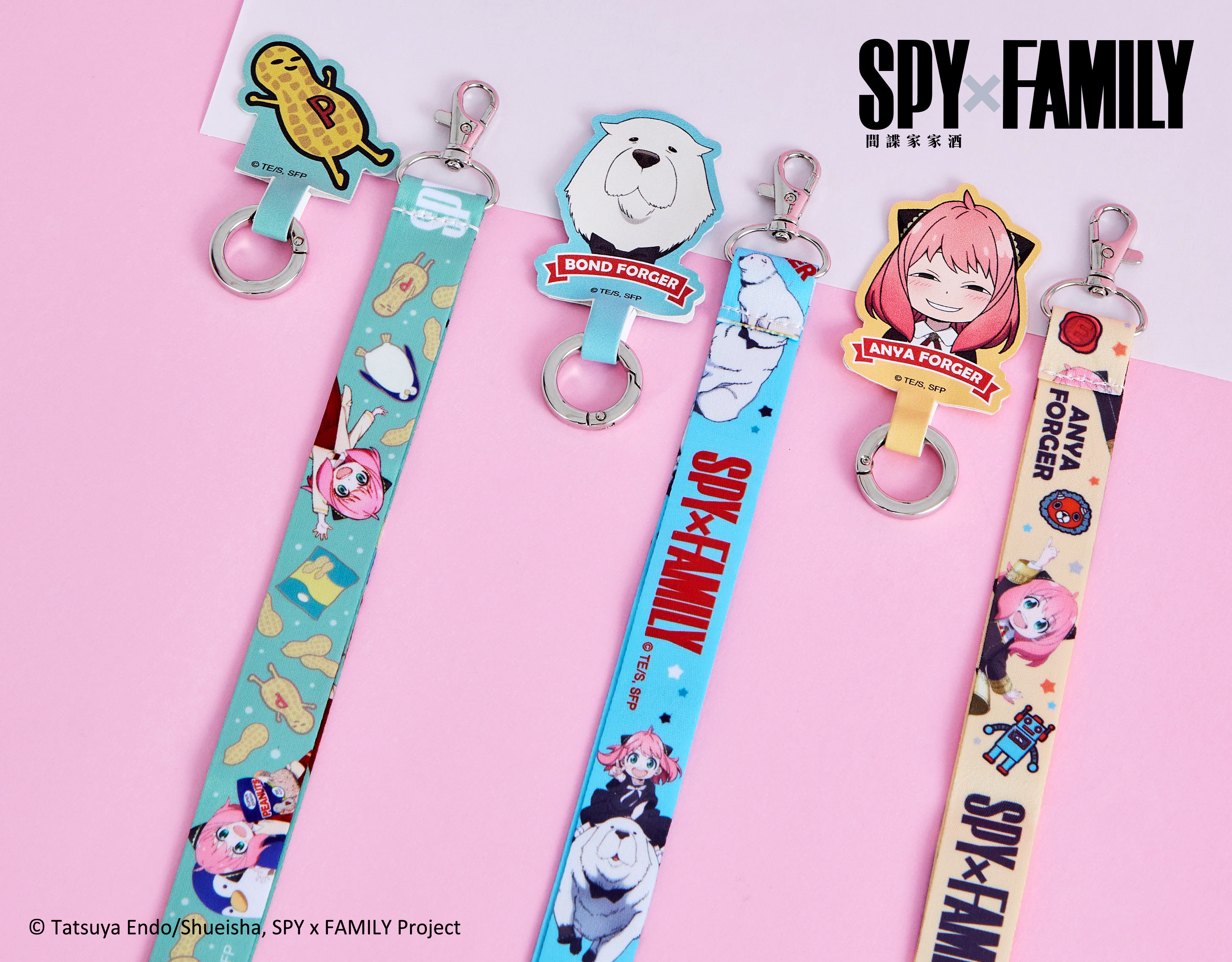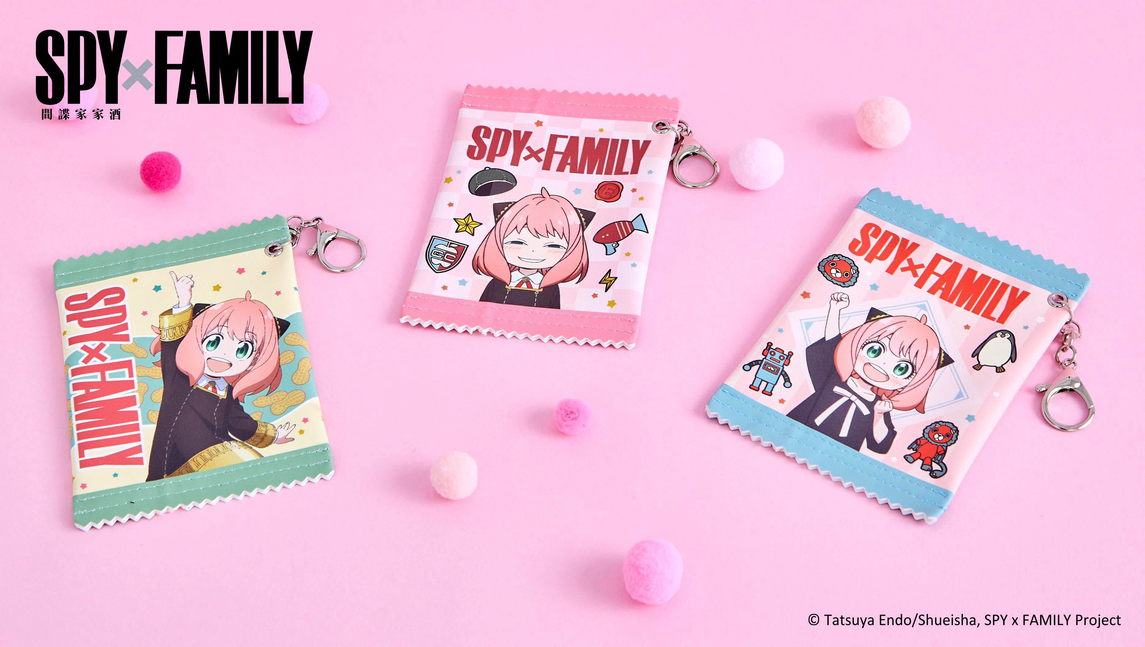 安妮亞喜歡的花生包裝和彭德化身「化妝包」,從裡面拿出化妝品超特別!四色「拉繩飲料提袋」佛傑一家跟企鵝幫你照顧飲料!想要戴著安妮亞、彭德或花生的飾品嗎?三款「項鍊」與「手鍊」買起來就對了!超可愛「磁扣鑰匙包」有安妮亞、彭德等四種款式,為你的穿搭加分!