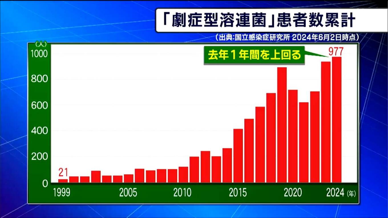 這次在日本引起廣泛注目,俗稱為「食人菌」的「A 型鏈球菌(日稱:劇症型溶連菌)」其實在過去就已經有感染案例,並不是新種疾病,而是一直潛伏在日常生活裡的細菌。但是根據1999年以後的統計,光是2024年前半年的日本感染人數,就已經打破了過去一年最多感染人數(941)人的紀錄,這也是為什麼突然成為媒體焦點的原因。