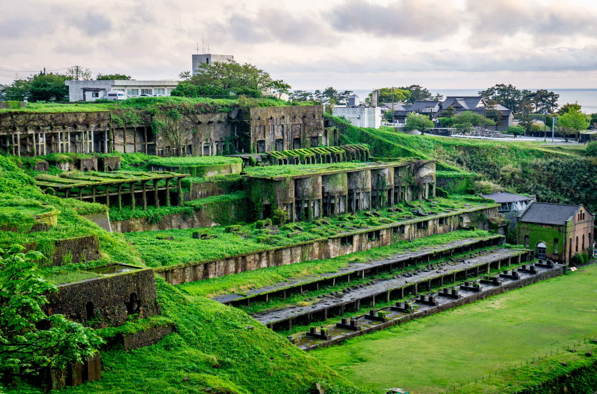 位於日本長崎市外海的軍艦島(ぐんかんじま),正式名稱為端島(はしま),因其外觀形似軍艦而得名。19世紀末至1974年間,軍艦島是繁榮的海底煤礦開採基地,最盛期時曾有超過5000名勞工及其家屬在此居住,支撐了日本的近代化。但在石油取代煤炭成為主要能源後,煤礦關閉,居民撤離,軍艦島逐漸成為廢墟。但當時的建築,如醫院、學校、神社和電影院等,仍然保存至今。2009年起,軍艦島開始對外開放觀光,遊客可以參加導覽遊,了解島嶼的歷史與文化背景。而在2015年,軍艦島作為「明治日本的工業革命遺產:鋼鐵、造船和煤炭產業」的一部分,被列入聯合國教科文組織世界遺產名錄。