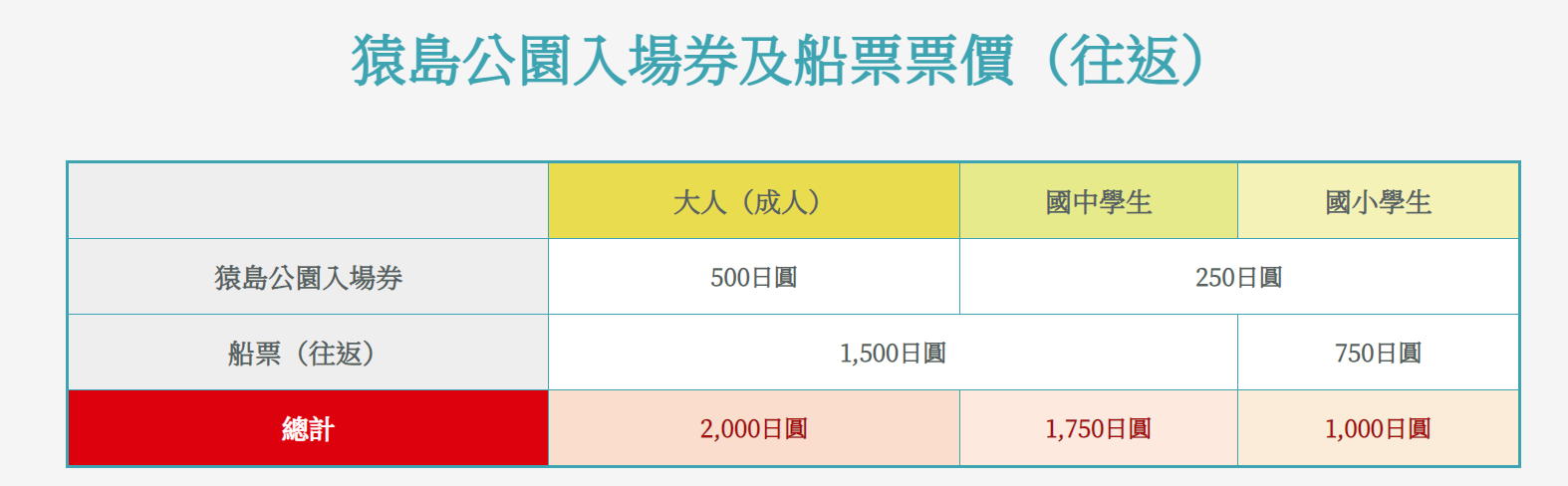 ■ 票價資訊:全票2,200日圓 ;半票1,100日圓 (皆為往返價格)