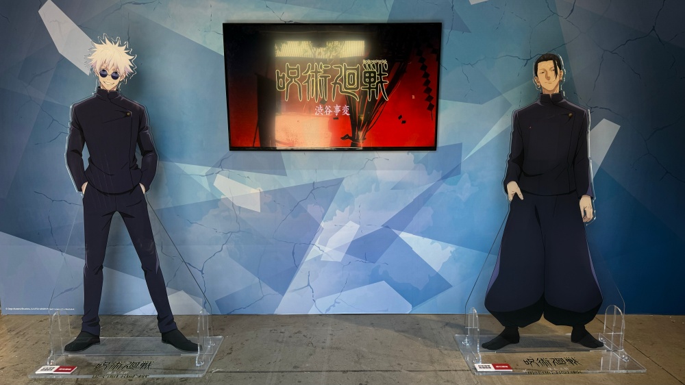 從展場外即能瞧見五條悟與夏油傑的制服姿等身大壓克力立牌在迎接各位咒術迷的到來!聽著有如進場音樂的片頭曲們讓來者瞬間憶起去年播映第二季時那個同樣炎熱卻令人熱血沸騰的夏天。