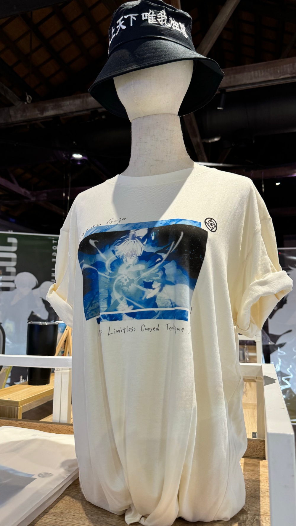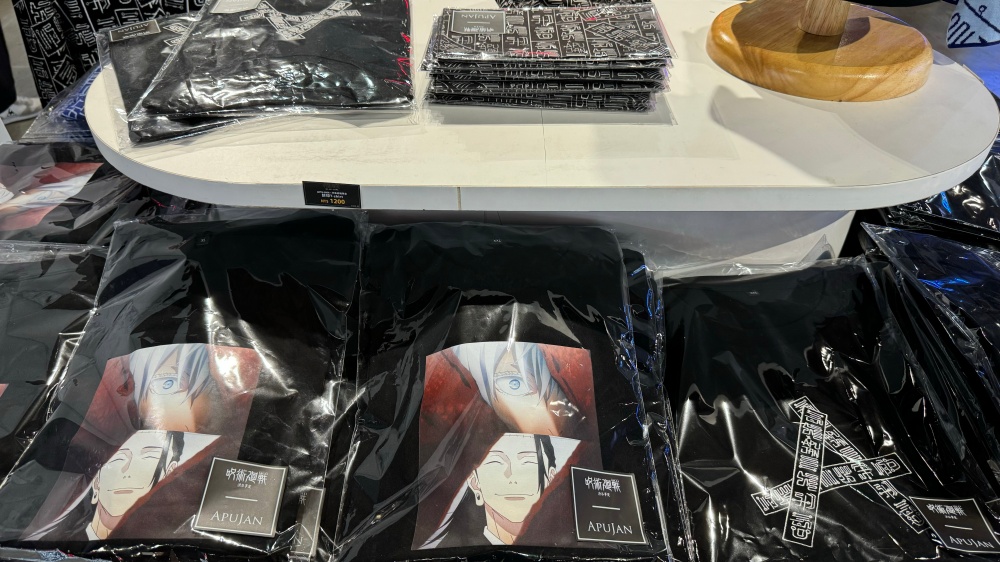 而對立志將「咒術愛」融入日常、甚至是成為穿搭重點的粉絲來說,高雄場除了上架有角色「澀谷事變TEE」(NT.$990)之外,更搶先販售與Xrange聯名的冬季款「無量空虛 刺繡短T」與「咒術高專 素黑短T(黑、白二色)」(NT.$1,380)。