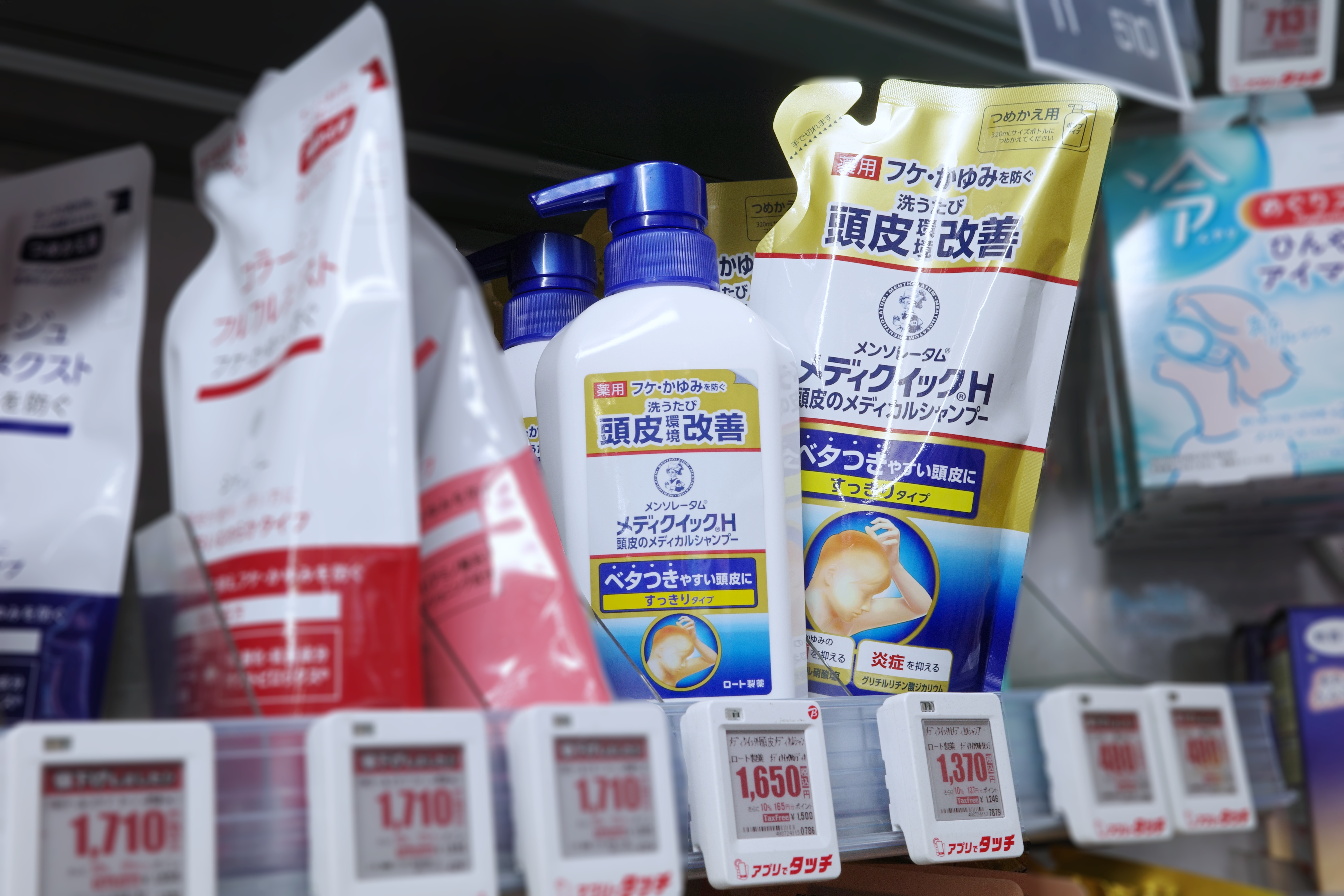 在BIC CAMERA貨架上一角有著樸素包裝的曼秀雷敦「Medi Quick H藥用洗髮精」是一款有著超高CP值的頭皮改善洗髮精,它一直是低調默默爆賣的人氣護髮洗髮精之一,如果你是冰雪女王天生就會生出一堆白色雪花,那來到BIC CAMERA絕對推薦帶上好幾瓶與補充包回家囉!