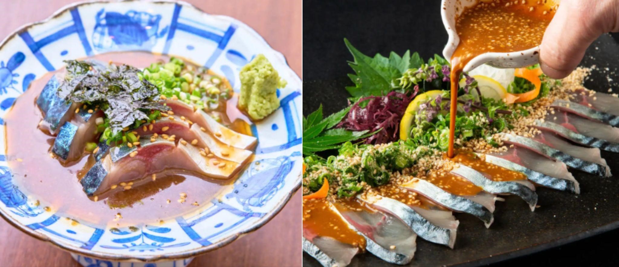 在福岡的居酒屋中,芝麻鯖魚(ごまさば)是一道博多經典美食。這道料理是將新鮮的鯖魚刺身浸泡在甜醬油中,並撒上芝麻和蔥等調味料。每家店的醬汁、調味料和芝麻的用量都會有所不同。即使是不喜歡生魚片或鯖魚的人,味蕾也會被這道料理所收服!