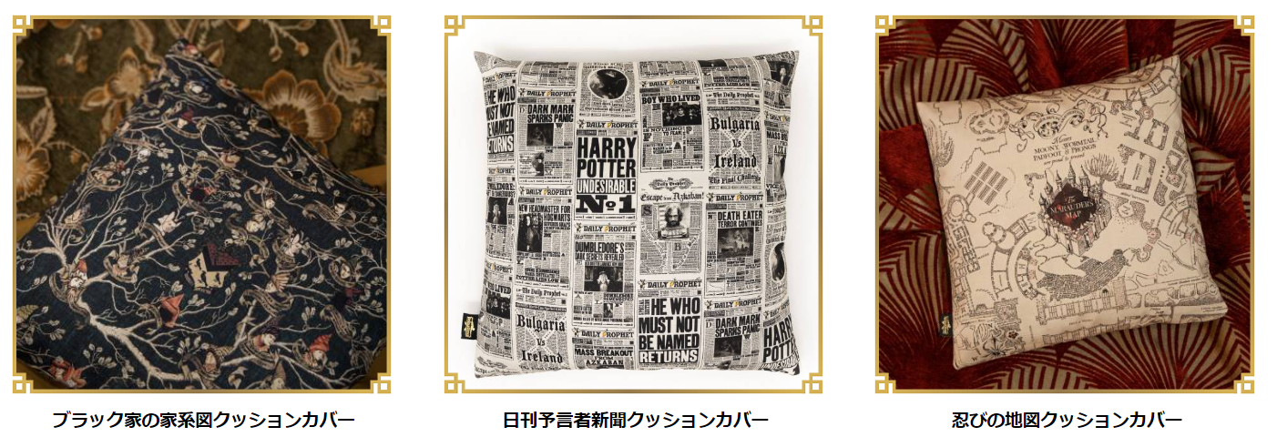 布萊克家族的家譜抱枕套、預言家日報抱枕套、劫盜地圖抱枕套 40cm x 40cm 各9,880日圓(含稅)