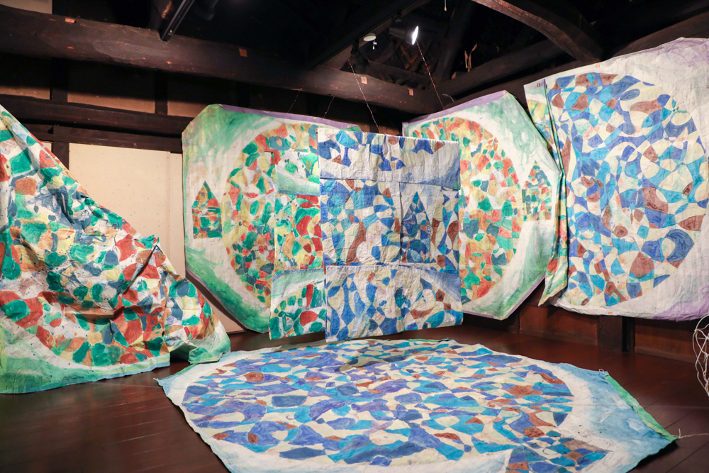 超過百年歷史的茅草屋頂古民家「產土神之家」(うぶすなの家),本屆展出的新作品為牛島智子的《つキかガみ巡ル月》(The moon revolves around Tsuki Kagami),藝術家將豐富的色彩以及幾何圖形描繪於和紙上,再將和紙變為立體的藝術裝置。除此之外,在產土神之家也可以享用由義大利料理主廚有馬幫明所監製、在地媽媽們烹調的在地鄉土料理套餐。色香味俱全的新鮮蔬菜由在地媽媽們親手栽培,白飯也是使用新潟在地的棚田米。