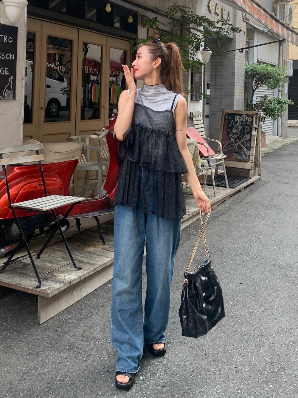 以輕柔雪紡材質為主的細肩帶上衣,帶點浪漫優雅的款式,使夏季穿搭增添一股知性魅力,不論透過單穿或者疊搭背心,能使造型完整度更高之外,融入荷葉拼接剪裁,還可以偷偷將肚子肉肉藏起,混搭牛仔褲與涼鞋就很加分。