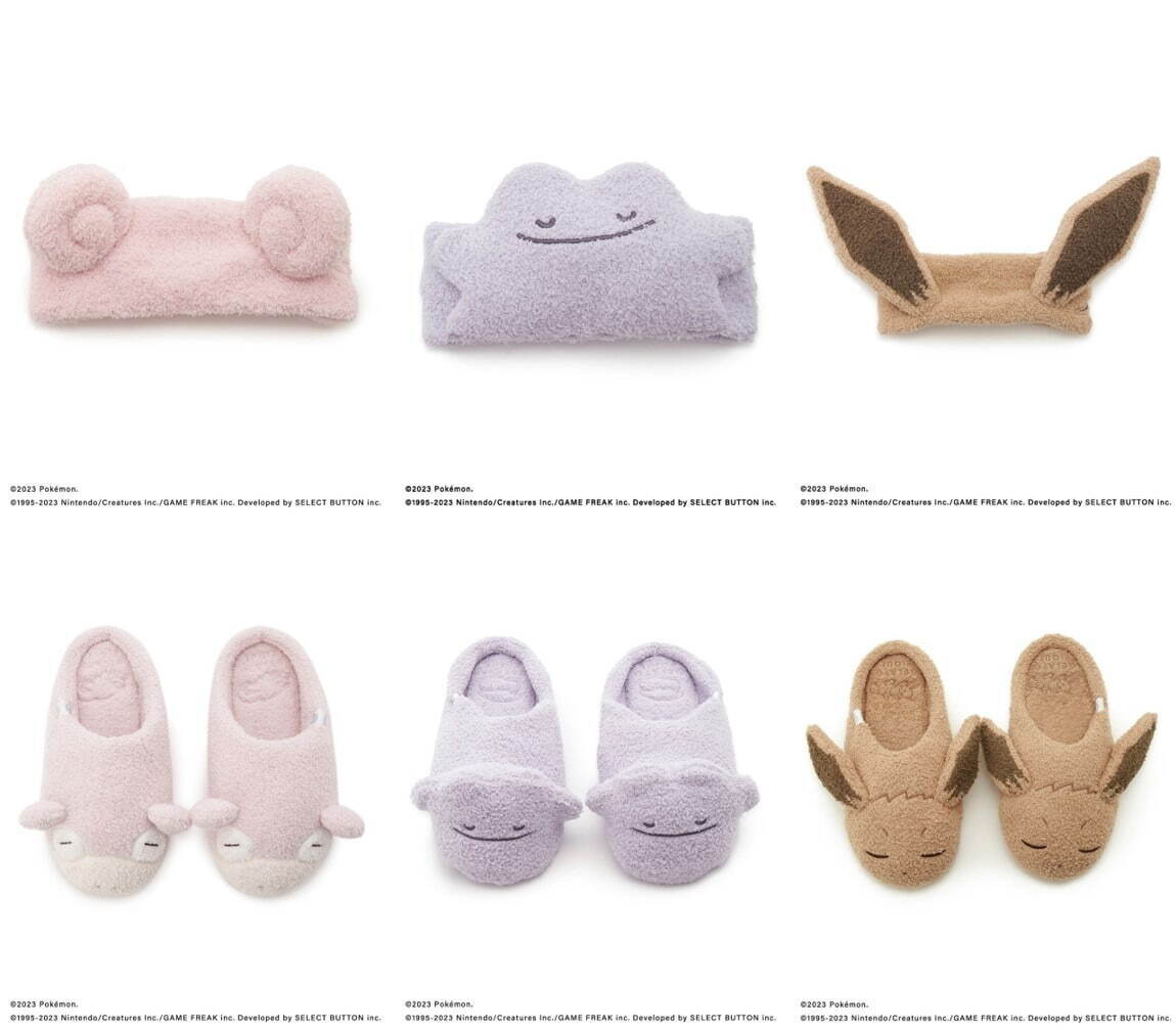 而要是想要找一些其他的小周邊的話,這次「Gelato pique」也有推出寶可夢主題的髮箍及拖鞋。在拖鞋上可以看到寶可夢們睡覺的樣子,真的是超級可愛又治癒的啦!