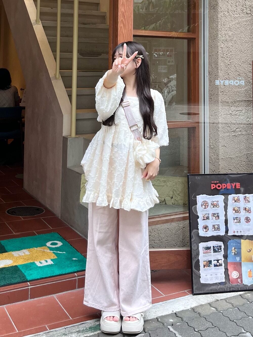 喜歡觀察日系穿搭的大家,相信都有發現,日本女生很喜歡穿著澎袖或五分袖造型的罩衫款式,尤其以白色的罩衫為主,帶點輕甜風格的單品,能提升整體的好感度印象,選擇直筒長裙混搭,營造魅力十足的女孩氣息,當想讓可愛度更加倍時,推薦加入甜美色的粉色長褲便很合適。