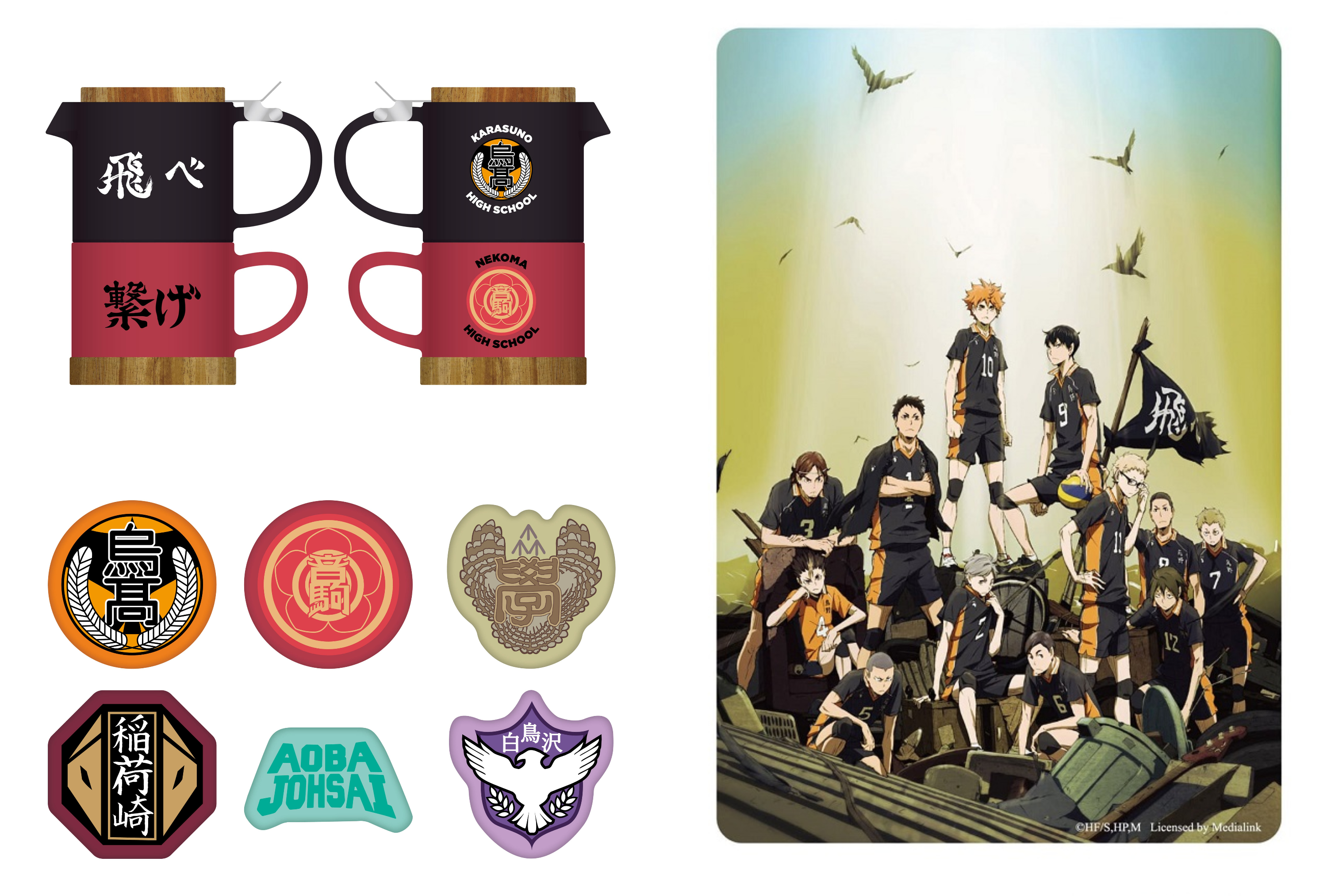 超實用「擴香石」共推出烏野四個代表Q版圖案,從日向、影山烏鴉、隊服到排球,怎麼能不收啊!有著烏野和音駒的兩款「方型抱枕」,音駒代表色紅色配上應援詞『維繫』,說有多帥就有多帥!幫門美化一下!兩款「長門簾」不論是烏野最強組合,還是音駒的孤爪與黑尾,掛在家裡都好帥!炎熱夏天就是要有「冷飲杯」有代表烏野高校的應援詞『飛翔!』,讓你補充水分同時,也幫你提振士氣吧!