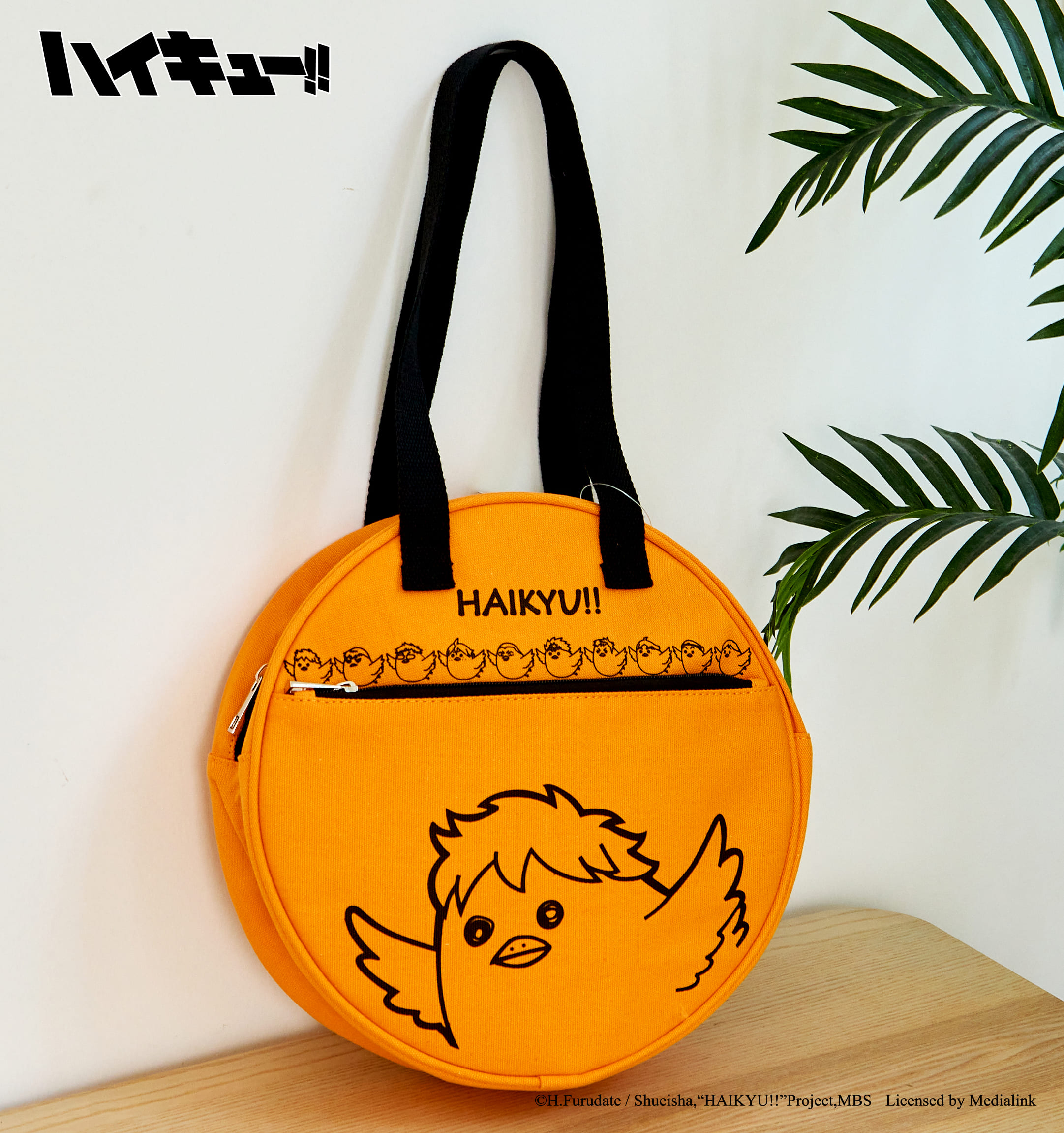 「玩偶收納飲料杯套」有烏野Q版吉祥物幫你拿飲料,提手上超吸睛,還可以把提袋收進烏鴉中,化身擺飾放桌上也超可愛!有著各隊Q版角色的「壓克力串串吊飾」共推出14款,不論是日向、影山的怪人速攻還是木兔的飛身撲球通通都來掛包上!出門就是要「圓形肩背包」,有代表烏野的橘色和烏鴉,背出門不僅包裝又好看!